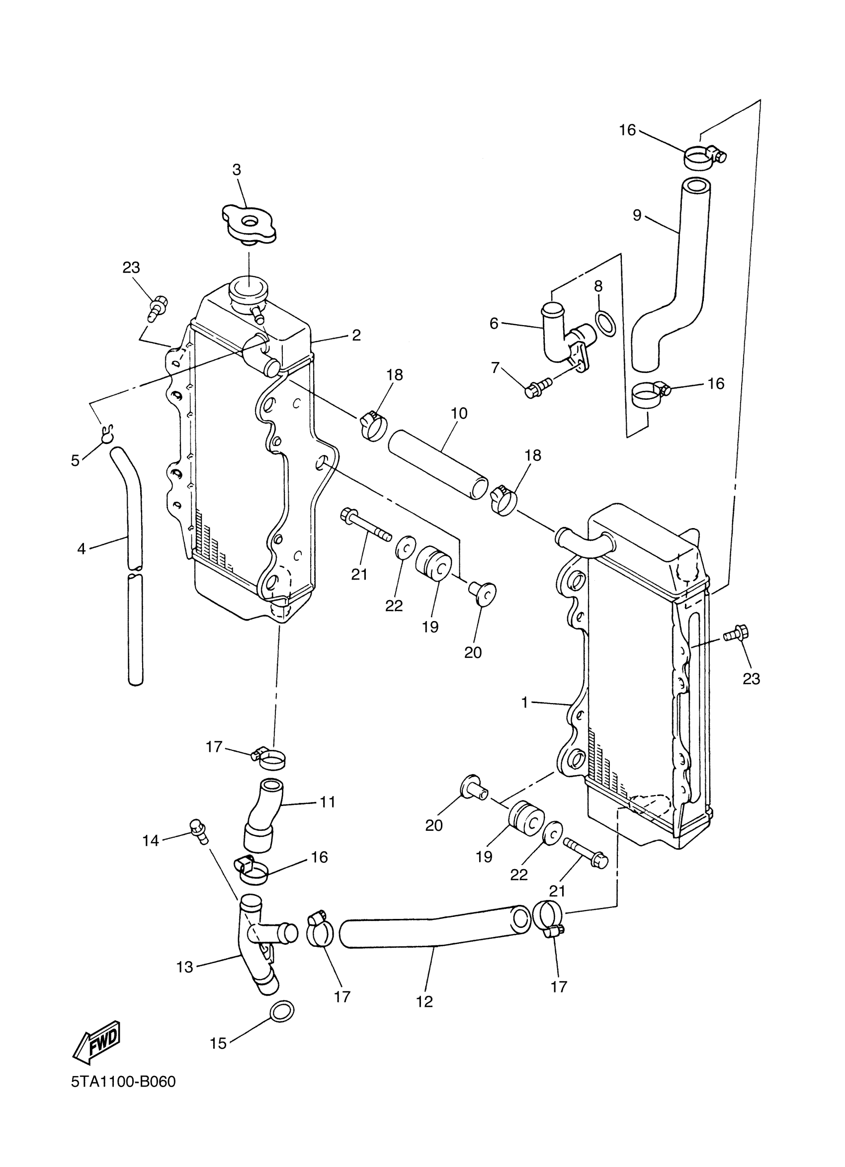 Yamaha YZ450FR (YZ450F) 5TA1 2003 RADIATOR HOSE Diagram