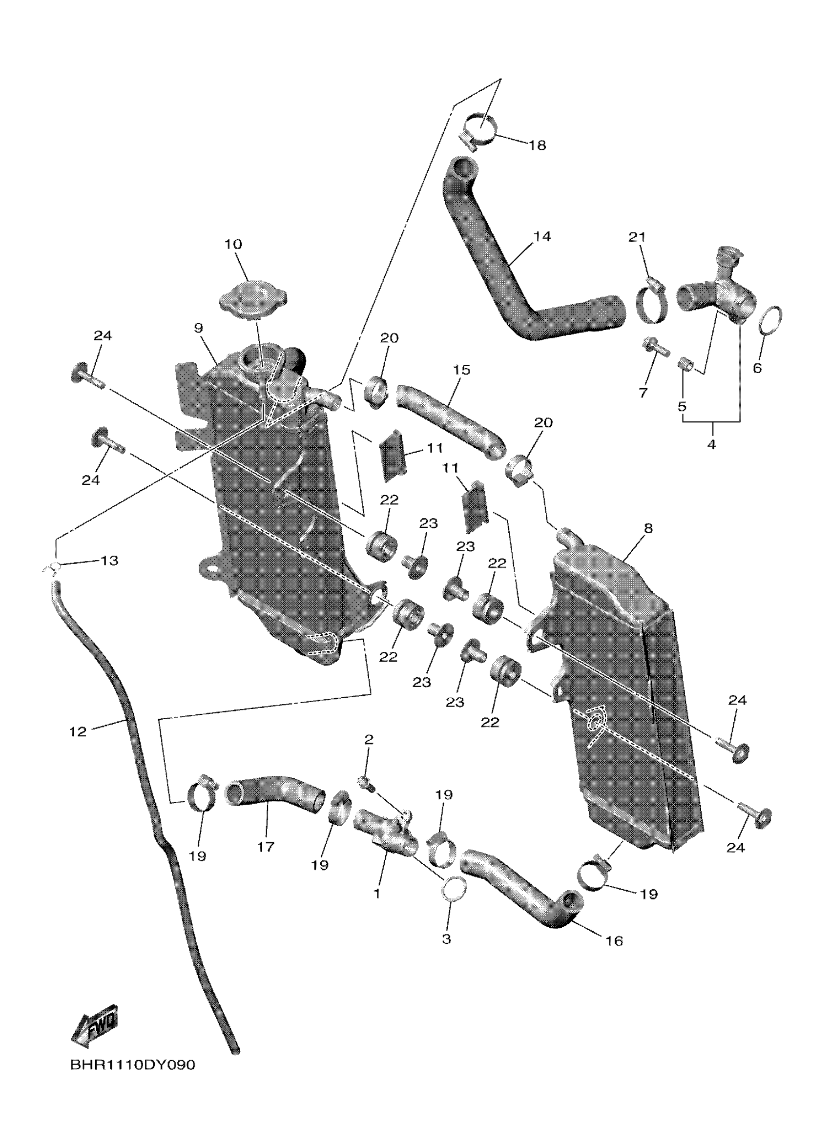 Yamaha YZ450FRL (YZ450F) BHR8 2024 RADIATOR & HOSE Diagram