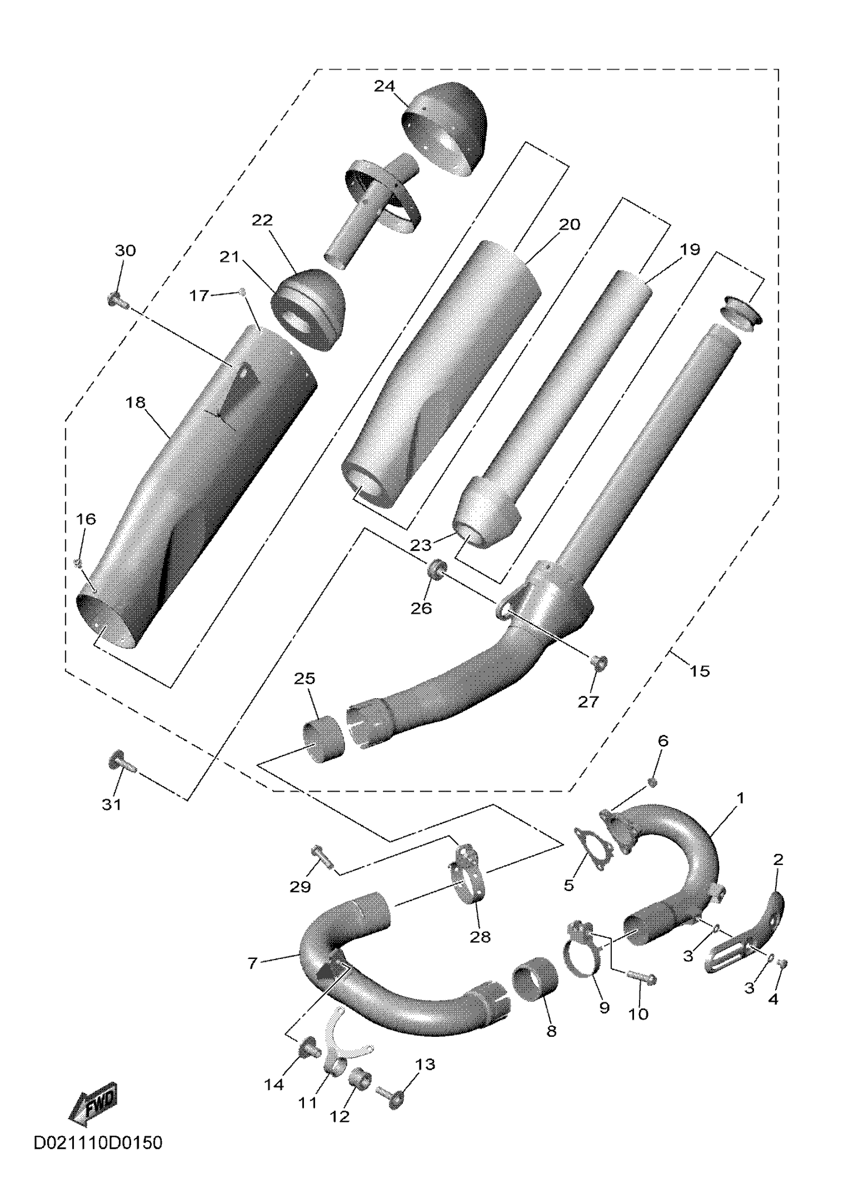 Yamaha YZ450FSL (YZ450F) D021 2025 EXHAUST Diagram