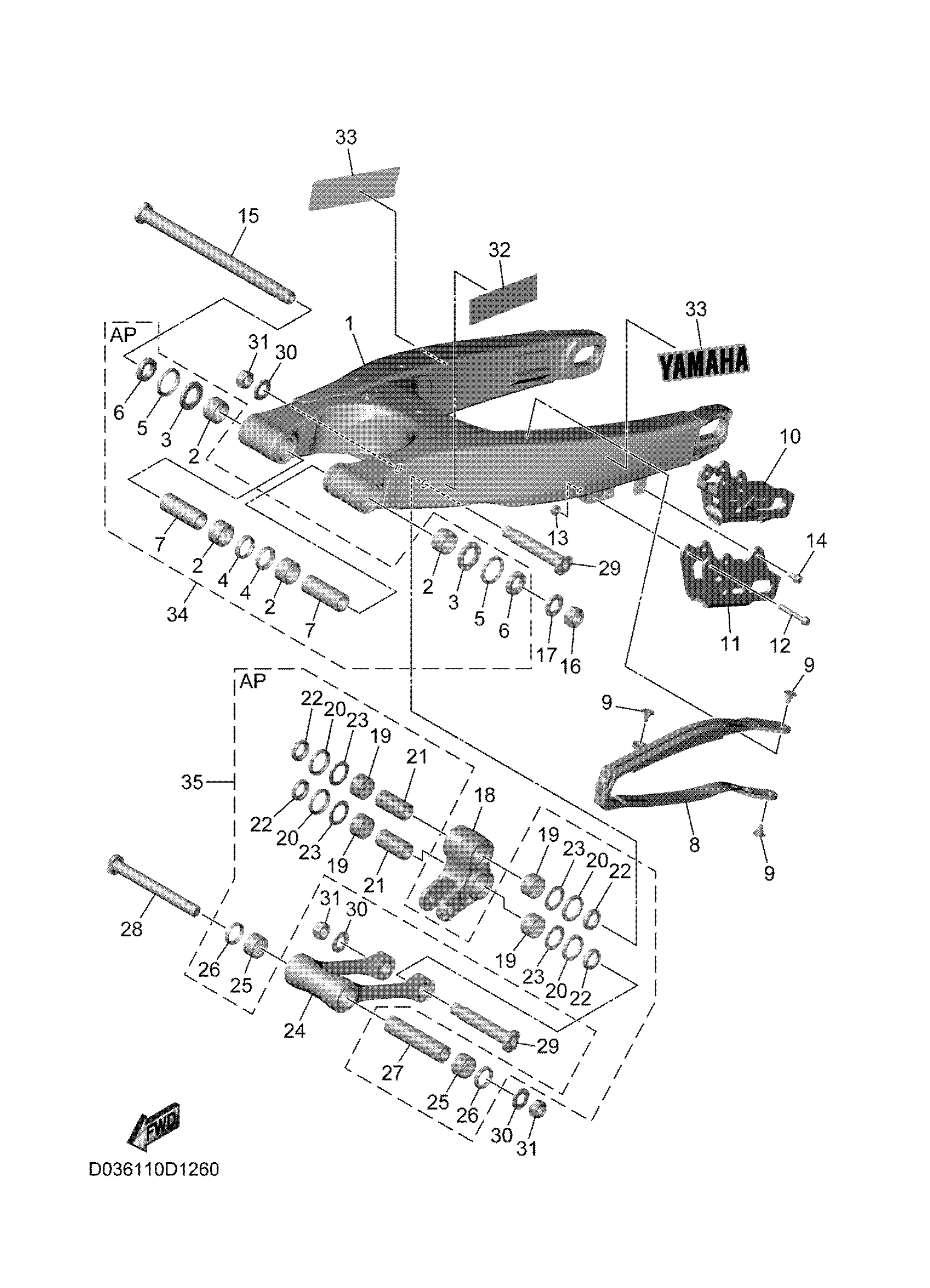 Yamaha YZ450FTSE (YZ450F 70TH ANNIVERSARY) D036 2026 REAR ARM Diagram