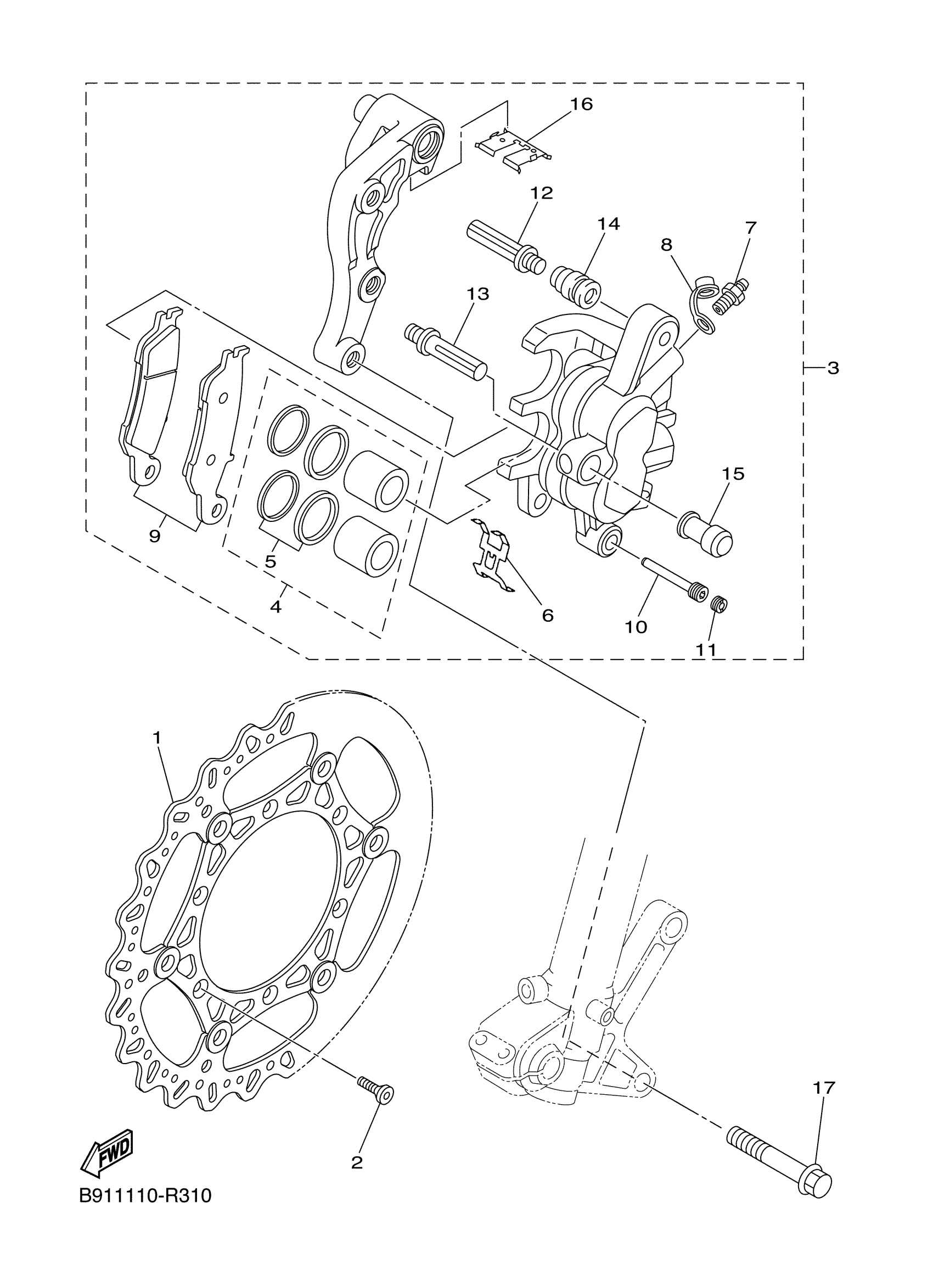 Yamaha YZ450FXH (YZ450FX) B916 2017 FRONT BRAKE CALIPER Diagram