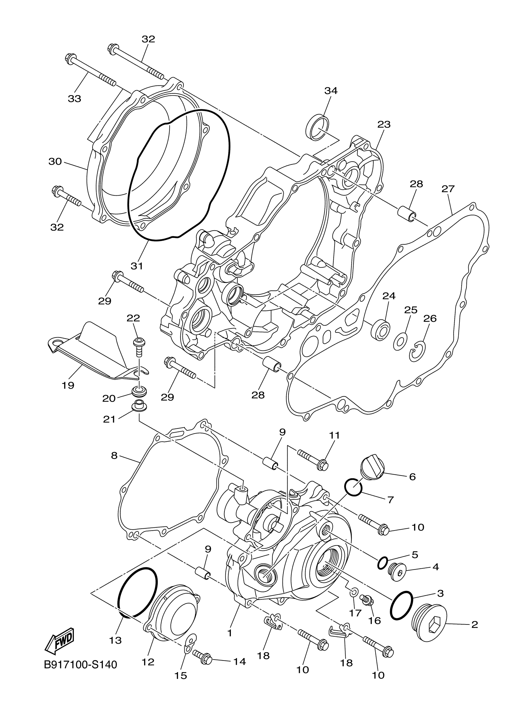 Yamaha YZ450FXJ (YZ450FX) B91B 2018 CRANKCASE COVER 1 Diagram
