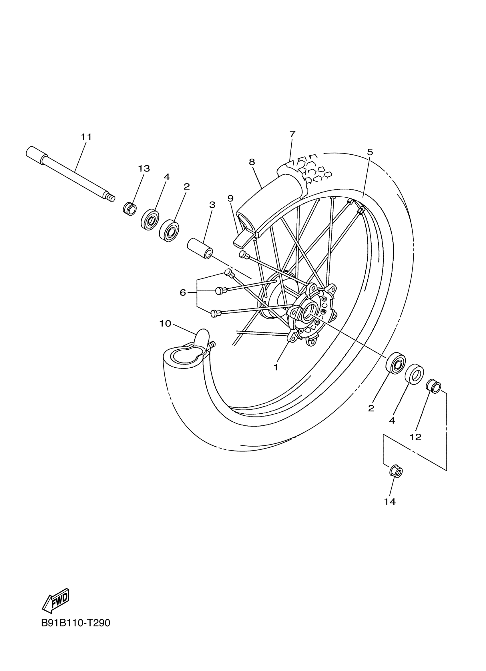 Yamaha YZ450FXJ (YZ450FX) B91B 2018 FRONT WHEEL Diagram