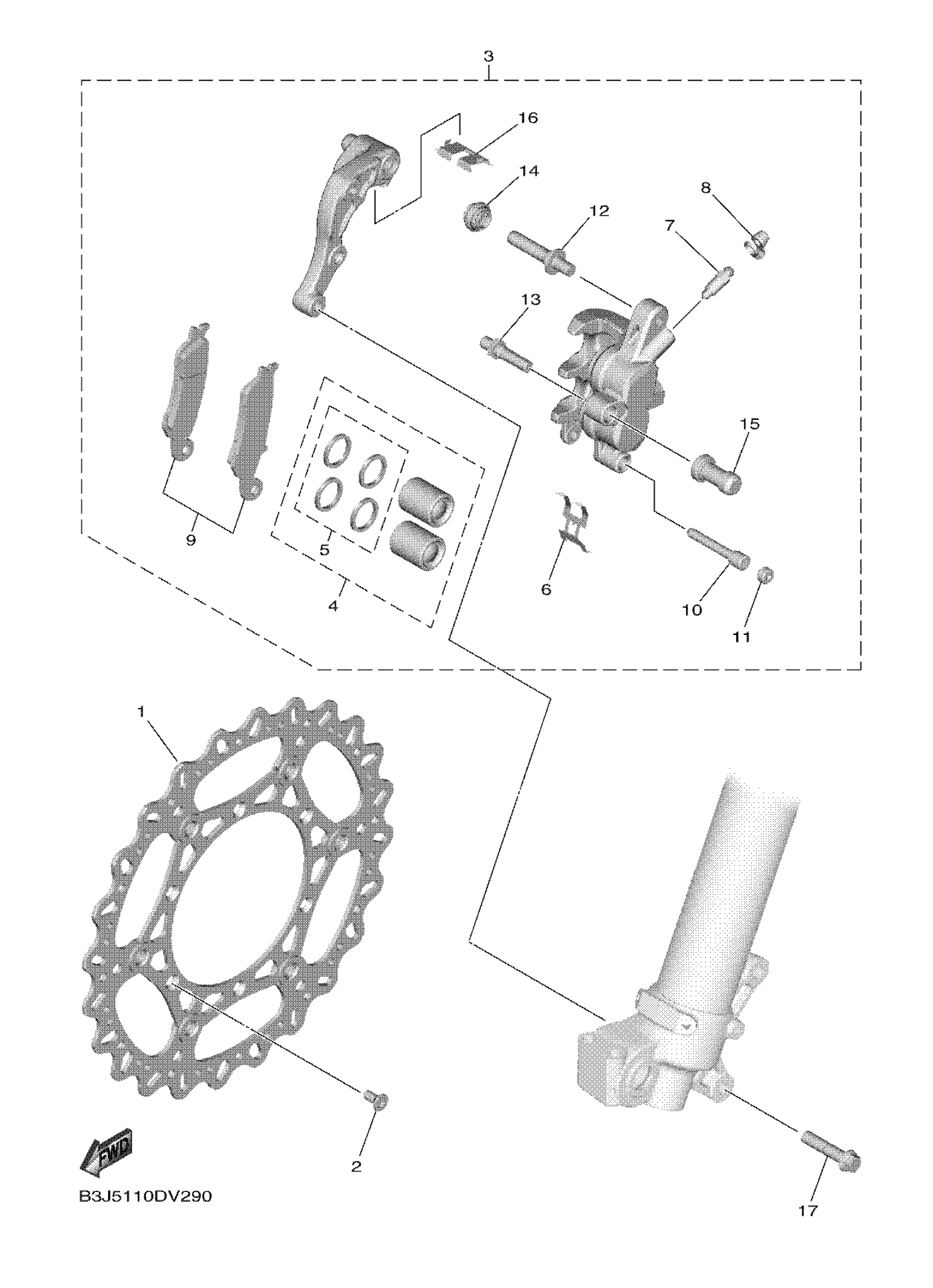 Yamaha YZ450FXL1 (YZ450FX) B3J5 2020 FRONT BRAKE CALIPER Diagram