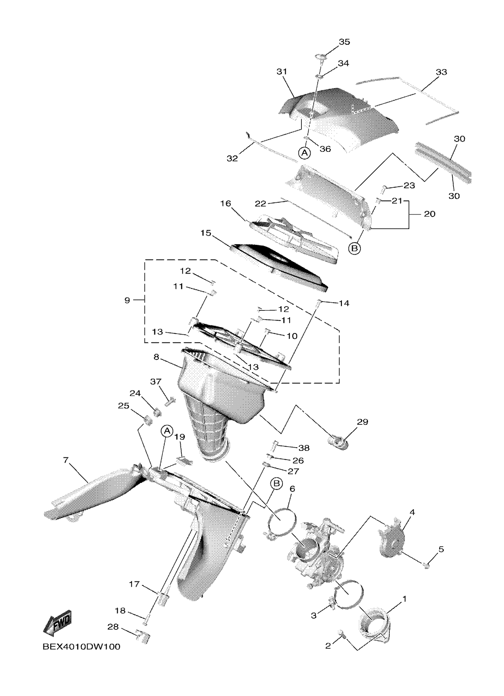 Yamaha YZ450FXP (YZ450FX) BEX9 2023 INTAKE Diagram