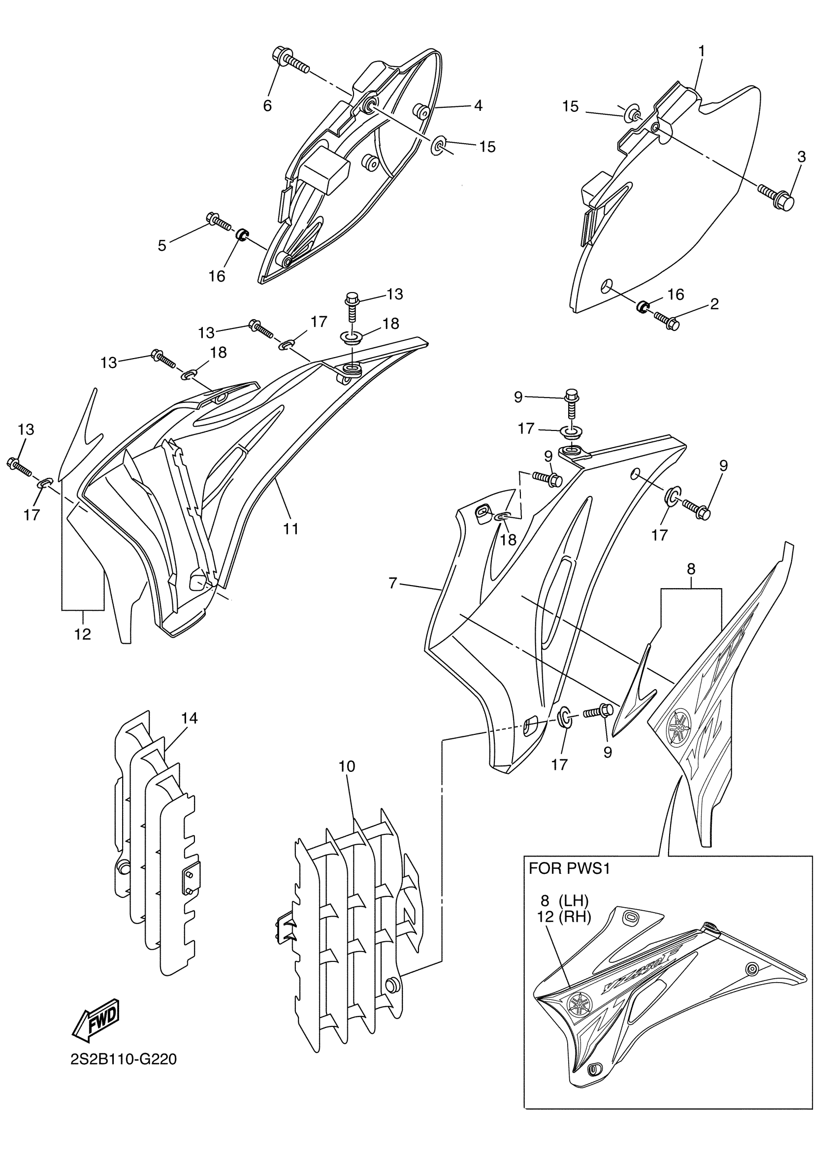 Yamaha YZ450FXW (YZ450F) 2S2B0 2008 SIDE COVER Diagram