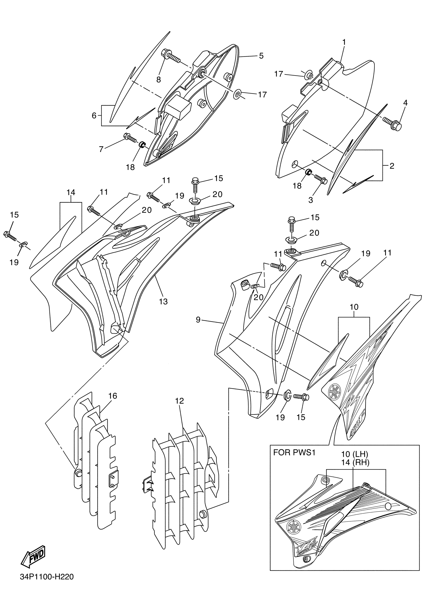 Yamaha YZ450FYW (YZ450F) 34P10 2009 SIDE COVER Diagram