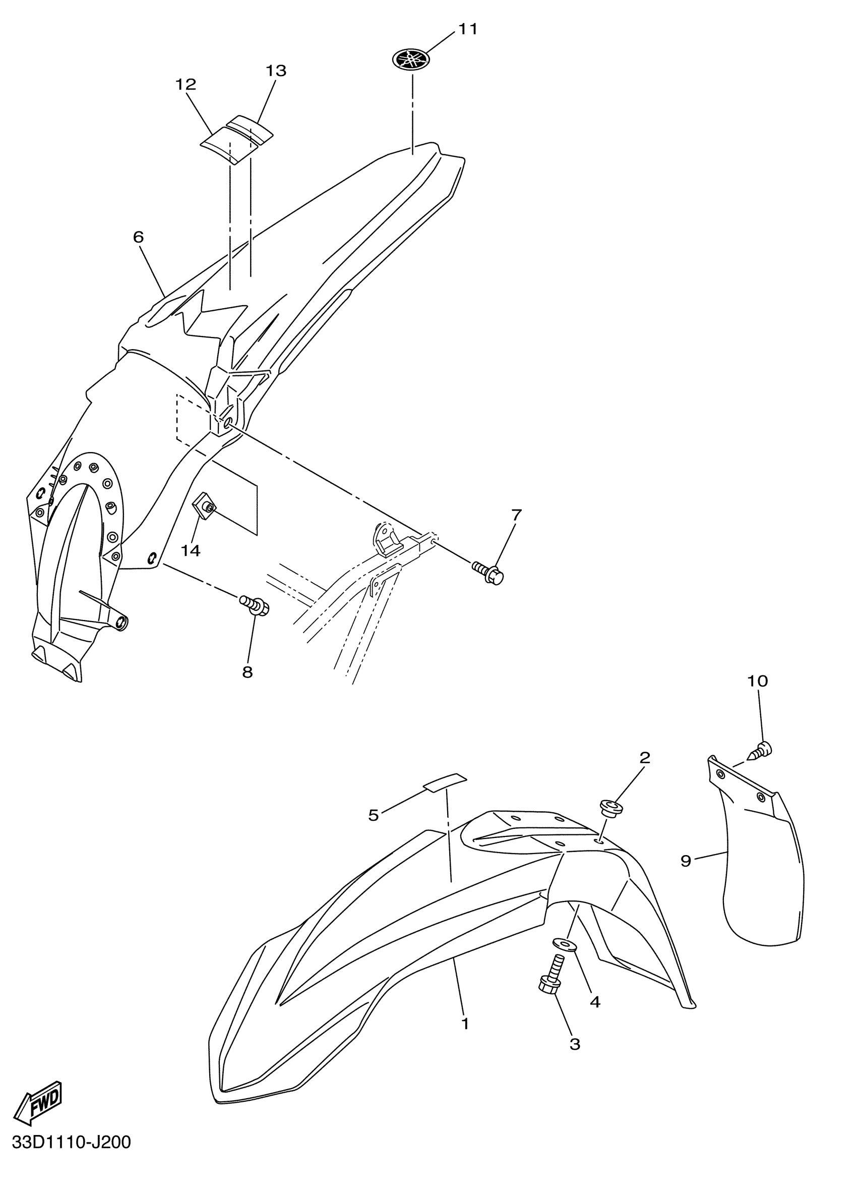 Yamaha YZ450FZW (YZ450F) 33D10 2010 FENDER Diagram