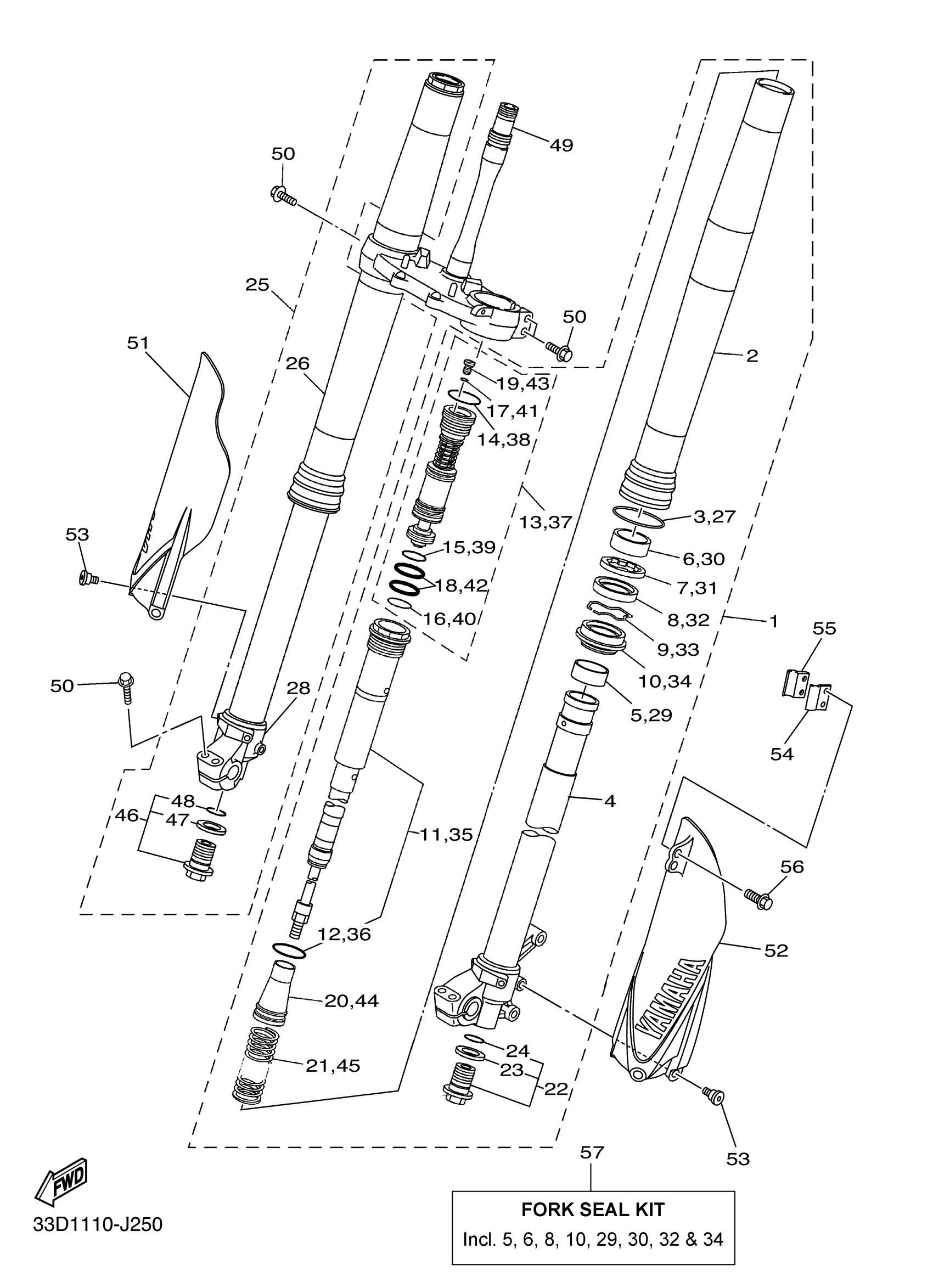 Yamaha YZ450FZW (YZ450F) 33D10 2010 FRONT FORK Diagram