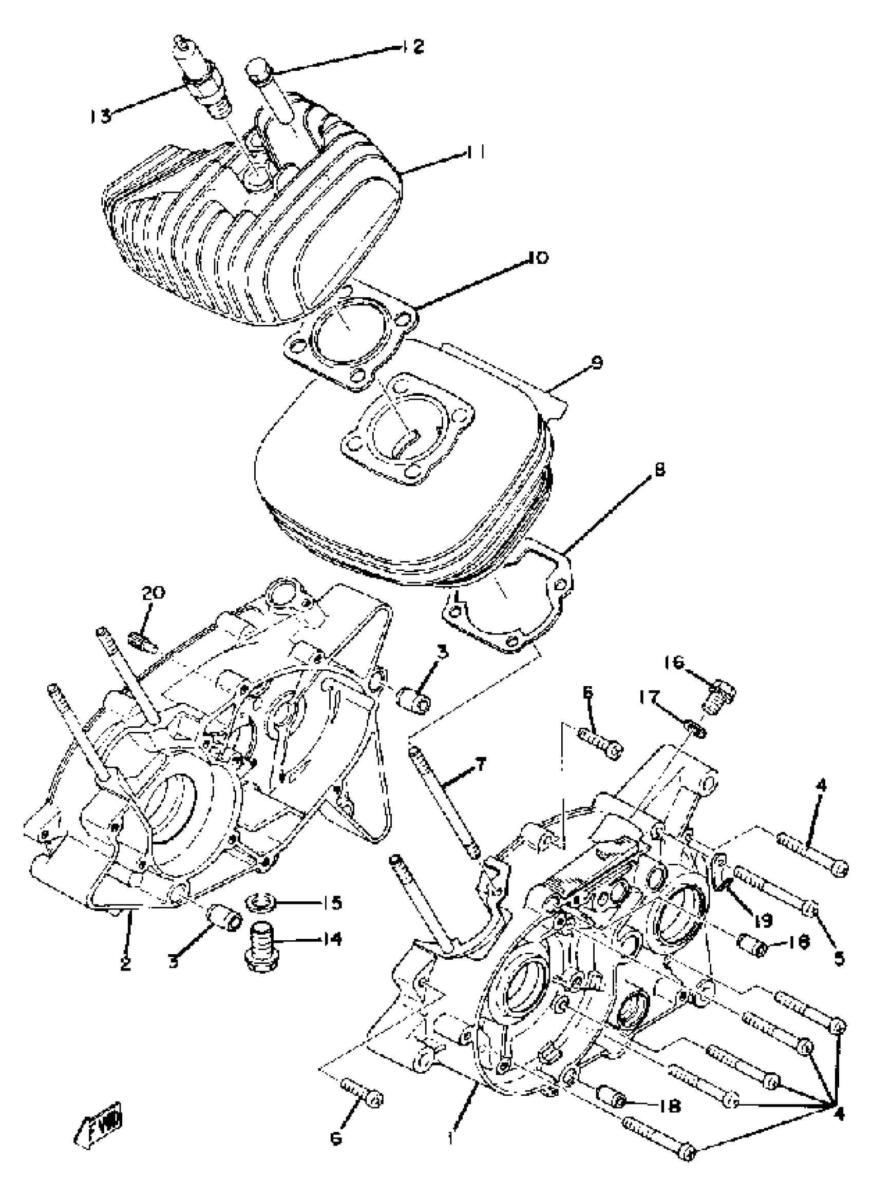 CRANKCASE - CYLINDER YZ80B - YZ80C