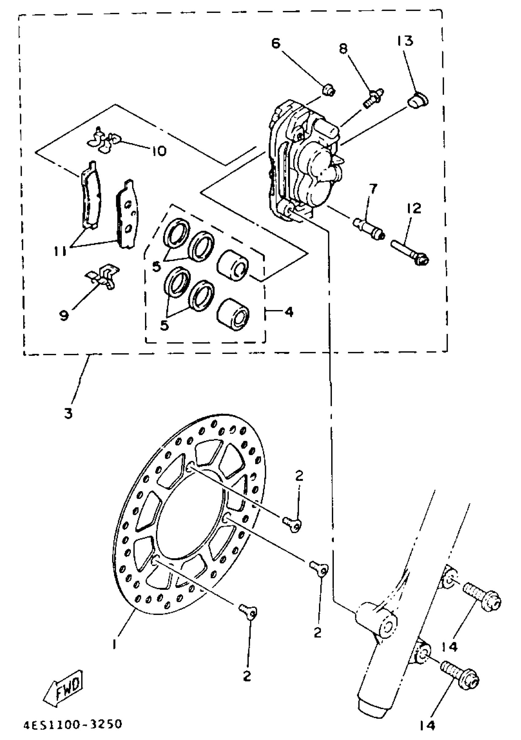 Yamaha YZ80E1 (YZ80E) 1993 FRONT BRAKE CALIPER Diagram