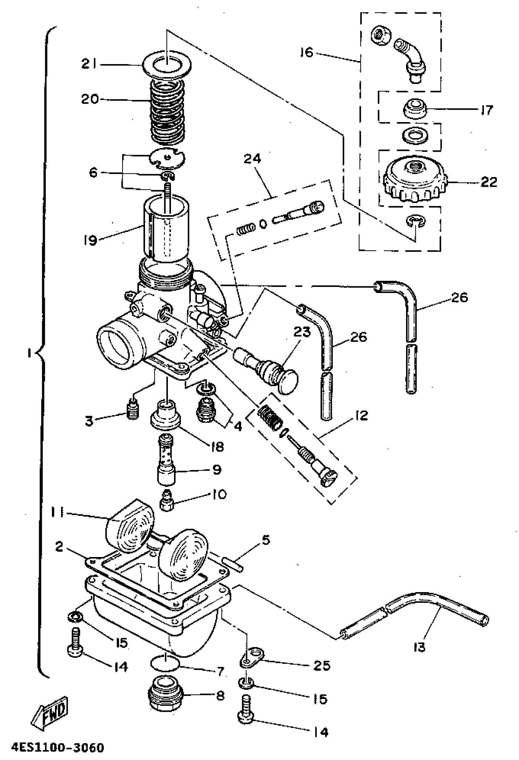 Yamaha YZ80F1 (YZ80F1) 1994 CARBURETOR Diagram