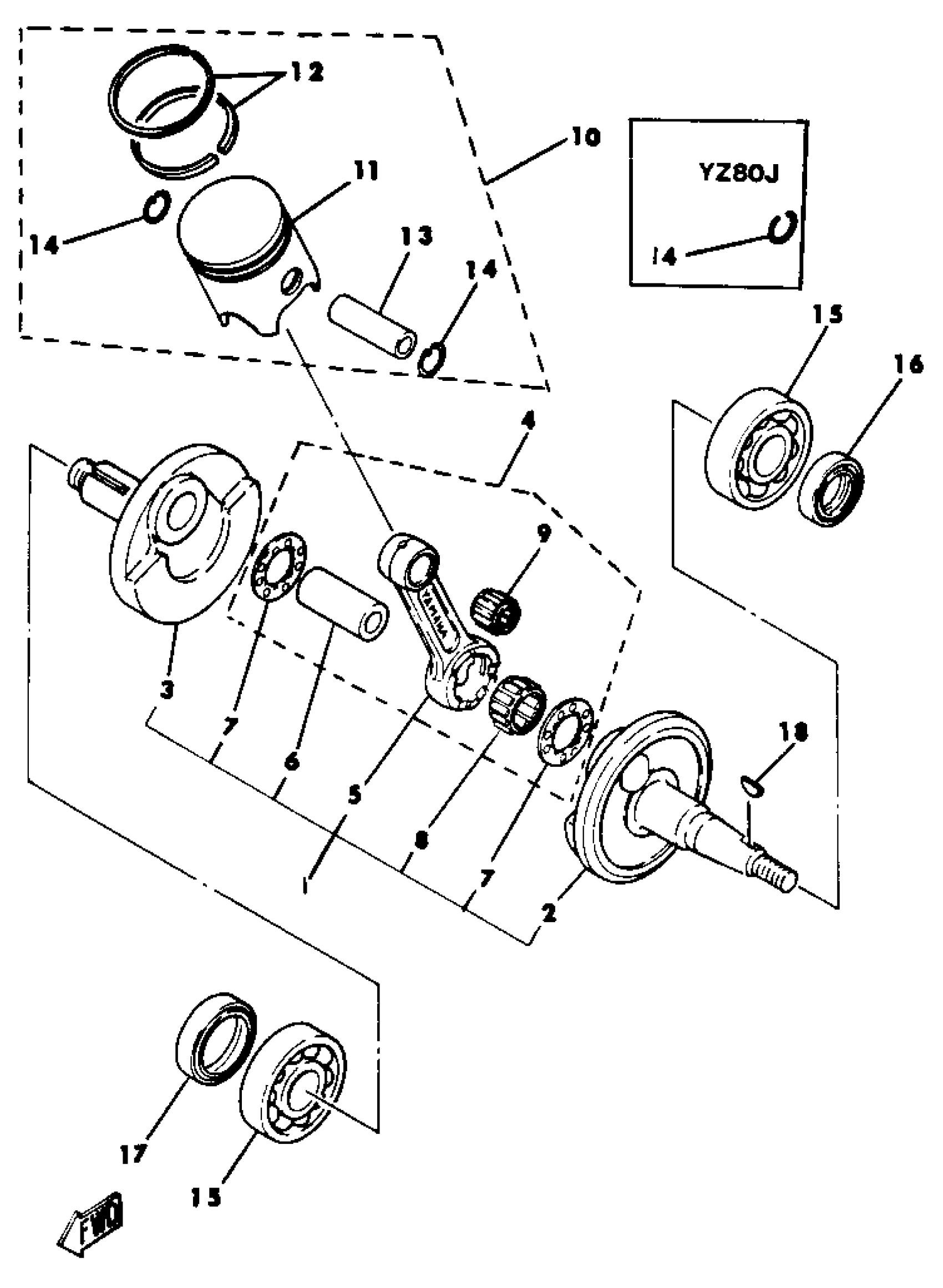 CRANKSHAFT PISTON YZ80H J