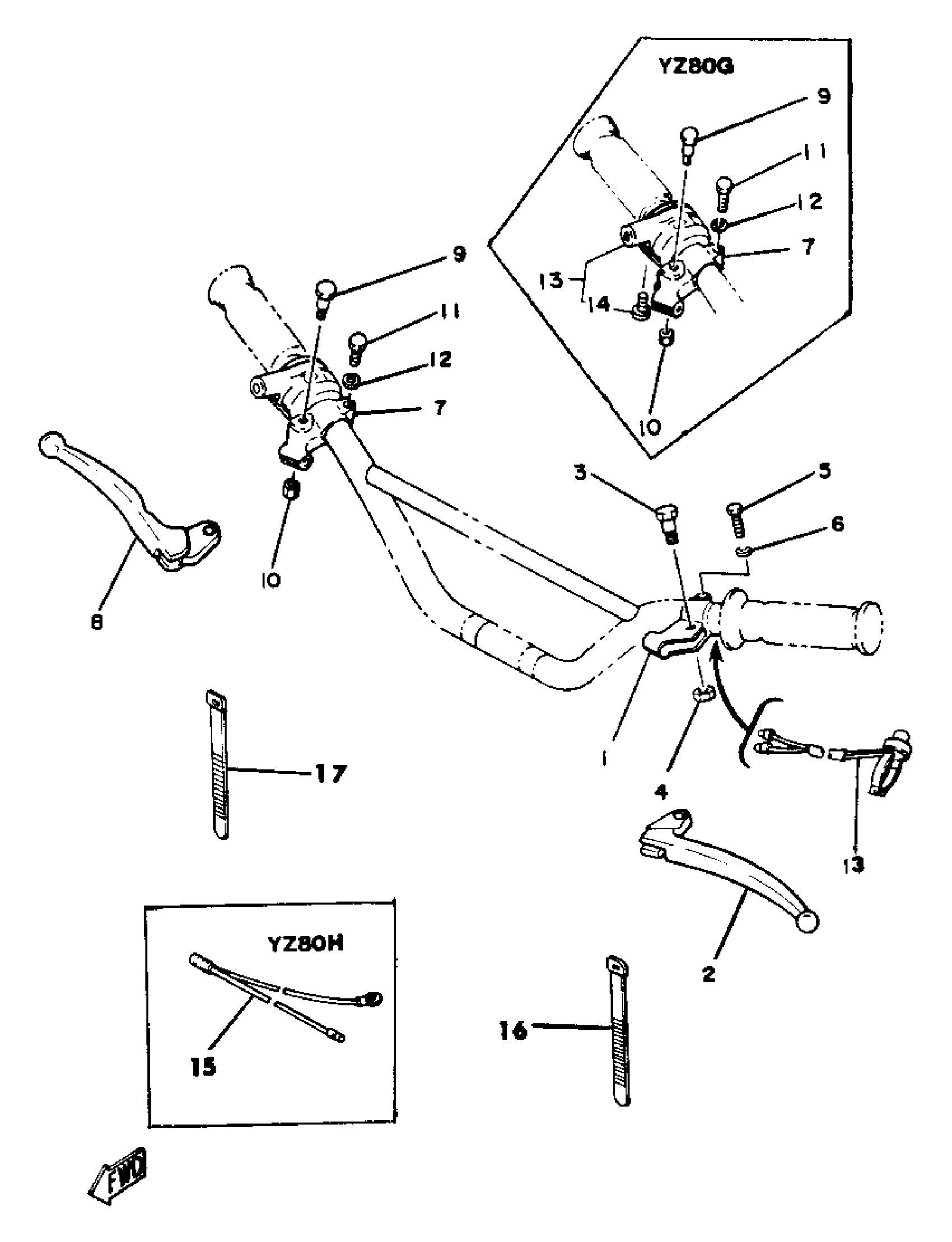 Yamaha YZ80G (YZ80G_H_J) 1980 HANDLE SWITCH LEVER YZ80G H Diagram