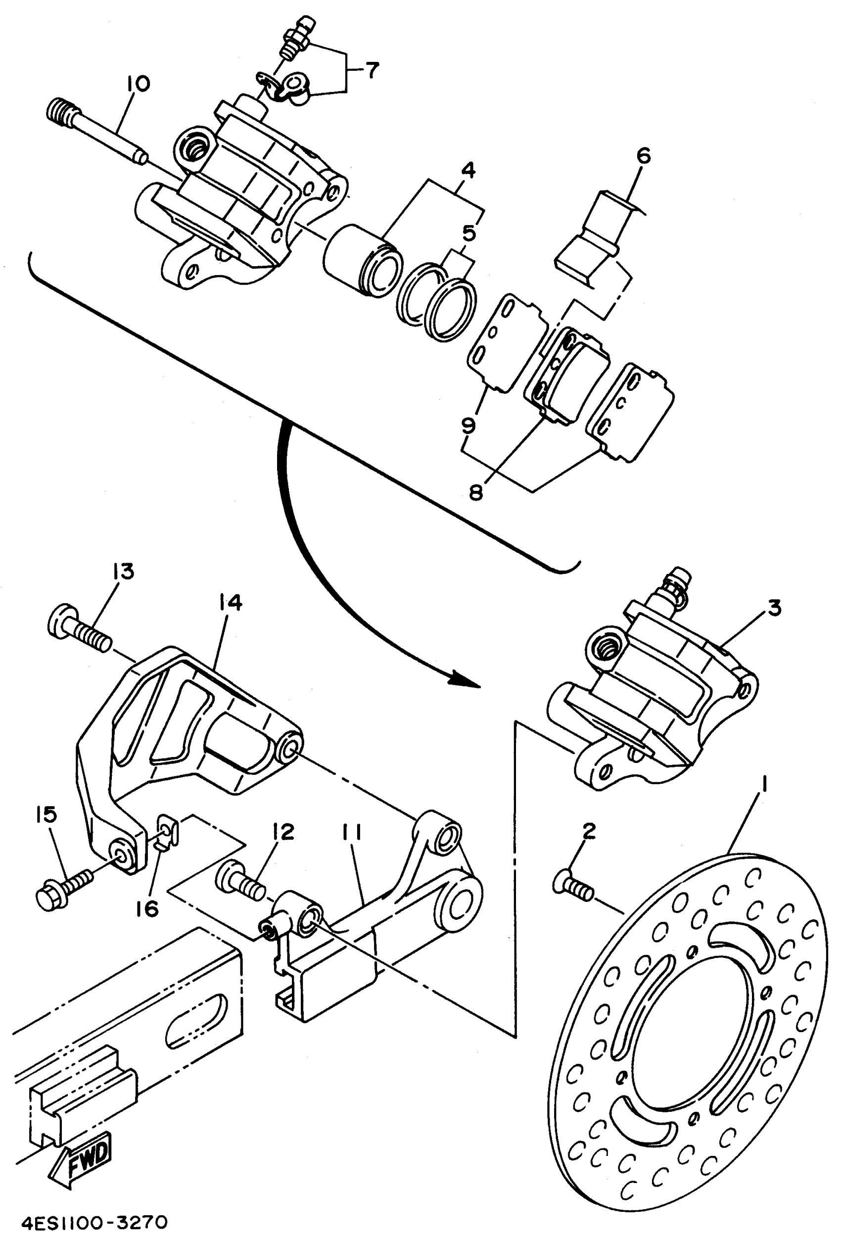 Yamaha YZ80H1 (YZ80H1) 1996 REAR BRAKE CALIPER Diagram