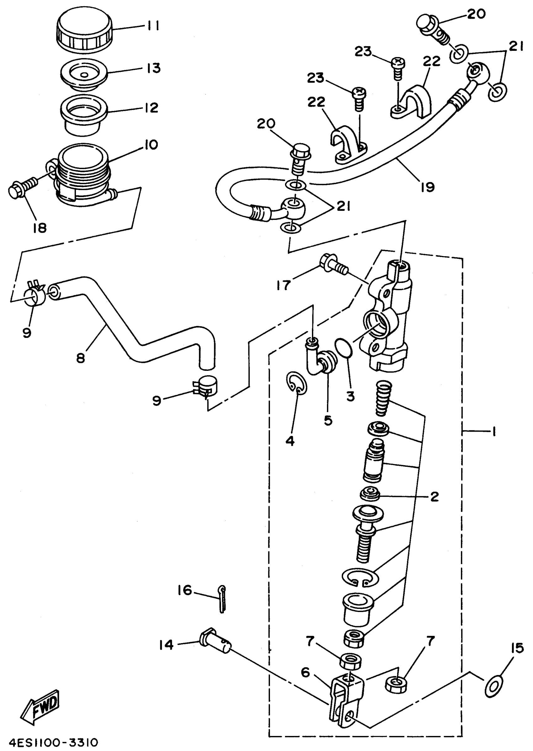 Yamaha YZ80H1 (YZ80H1) 1996 REAR MASTER CYLINDER Diagram