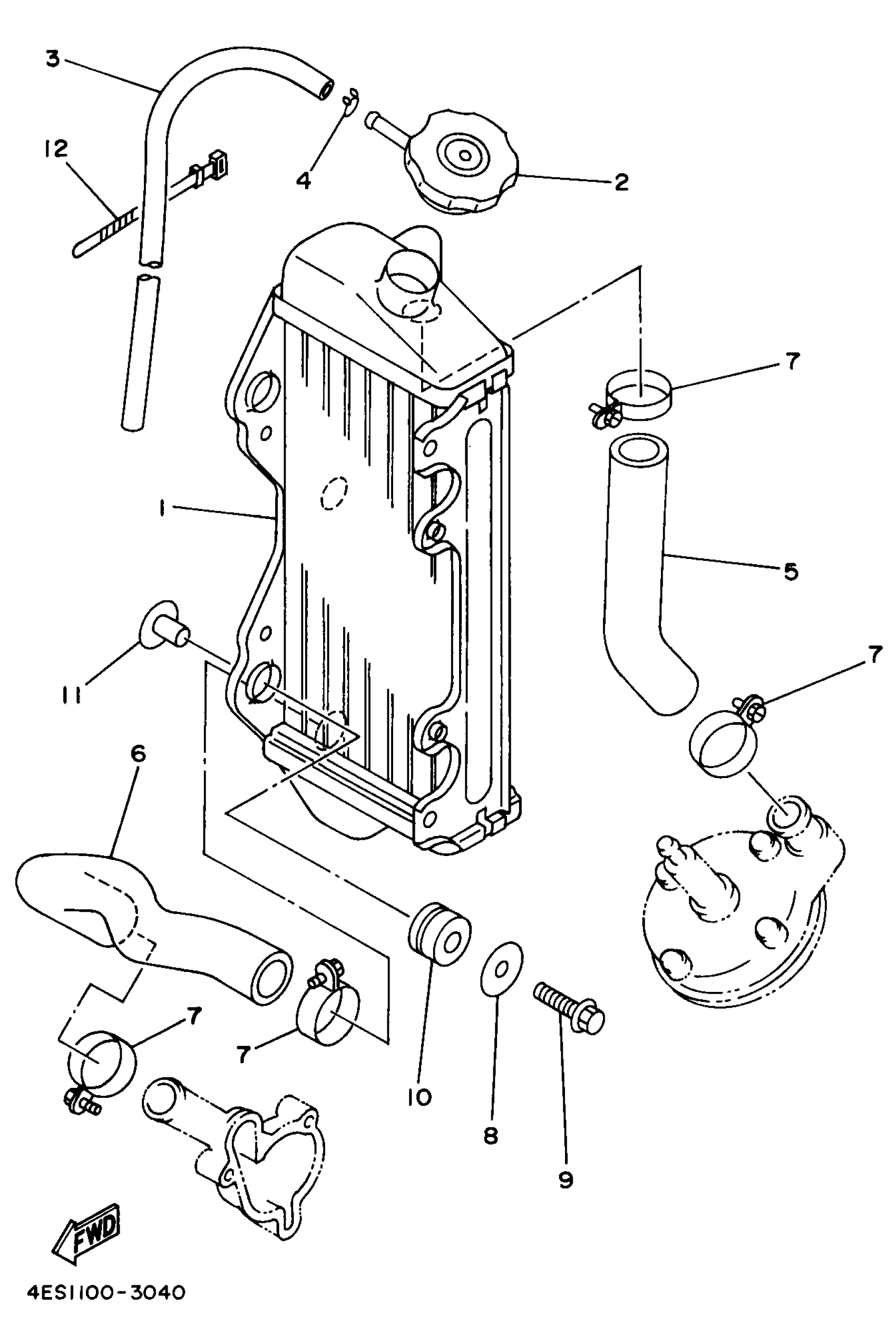 Yamaha YZ80K1 (YZ80) 1998 RADIATOR HOSE Diagram