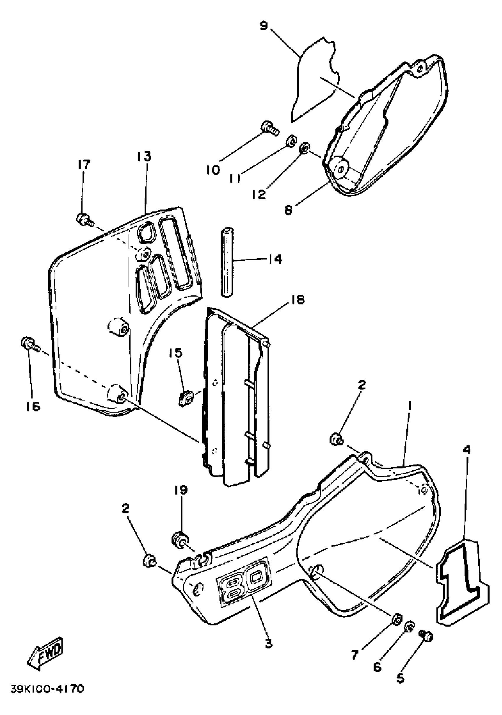 Yamaha YZ80L (YZ80L_N) 39K 1984 SIDE COVER Diagram