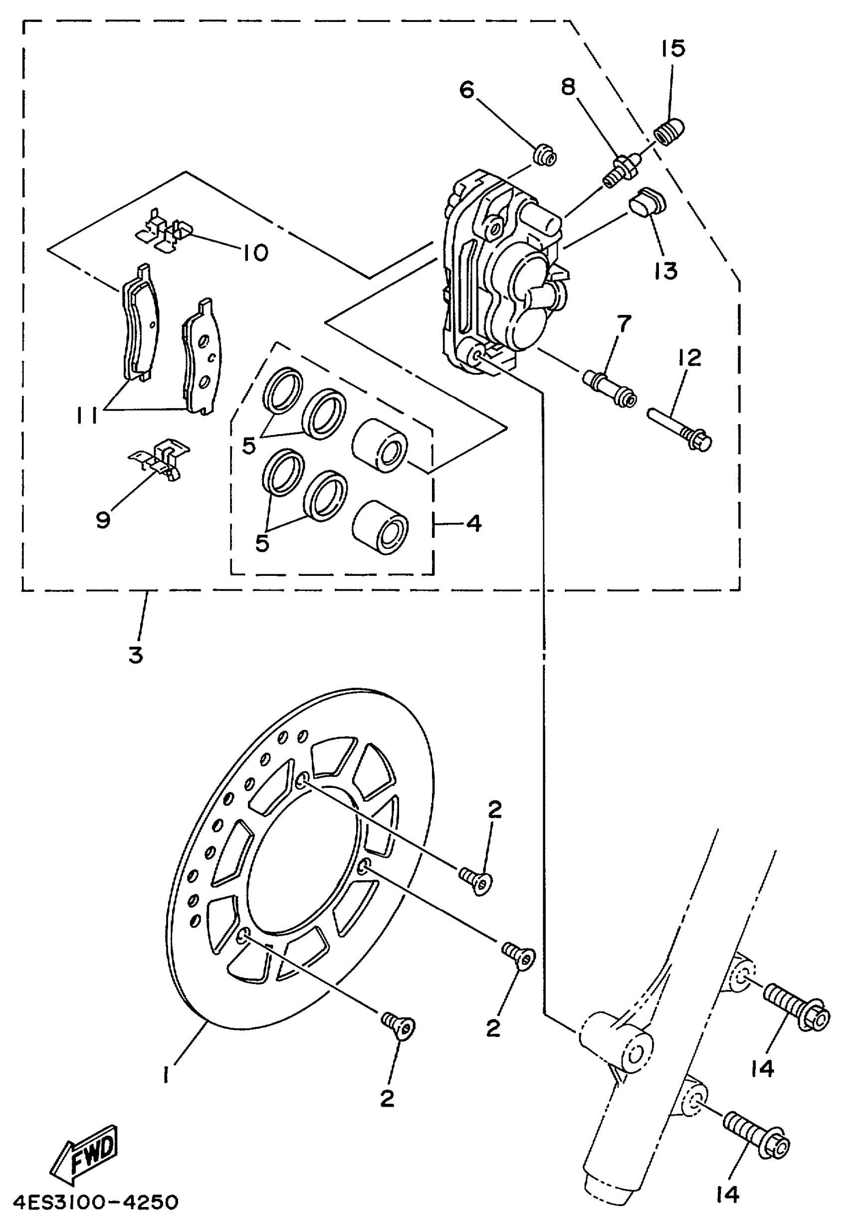 Yamaha YZ80L1 (YZ80) 4ES8 1999 FRONT BRAKE CALIPER Diagram