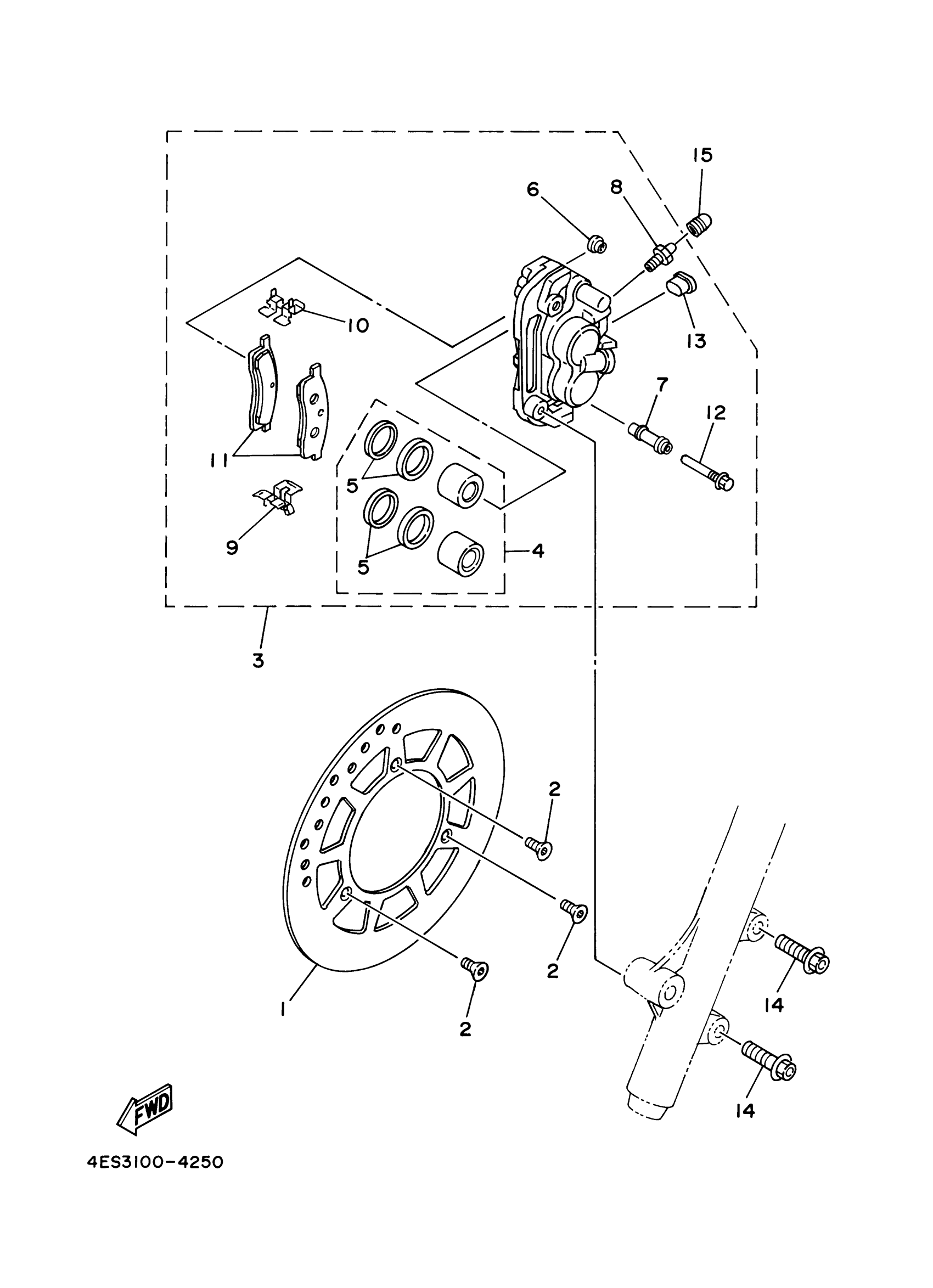 Yamaha YZ80M1 (YZ80) 4ES9 2000 FRONT BRAKE CALIPER Diagram