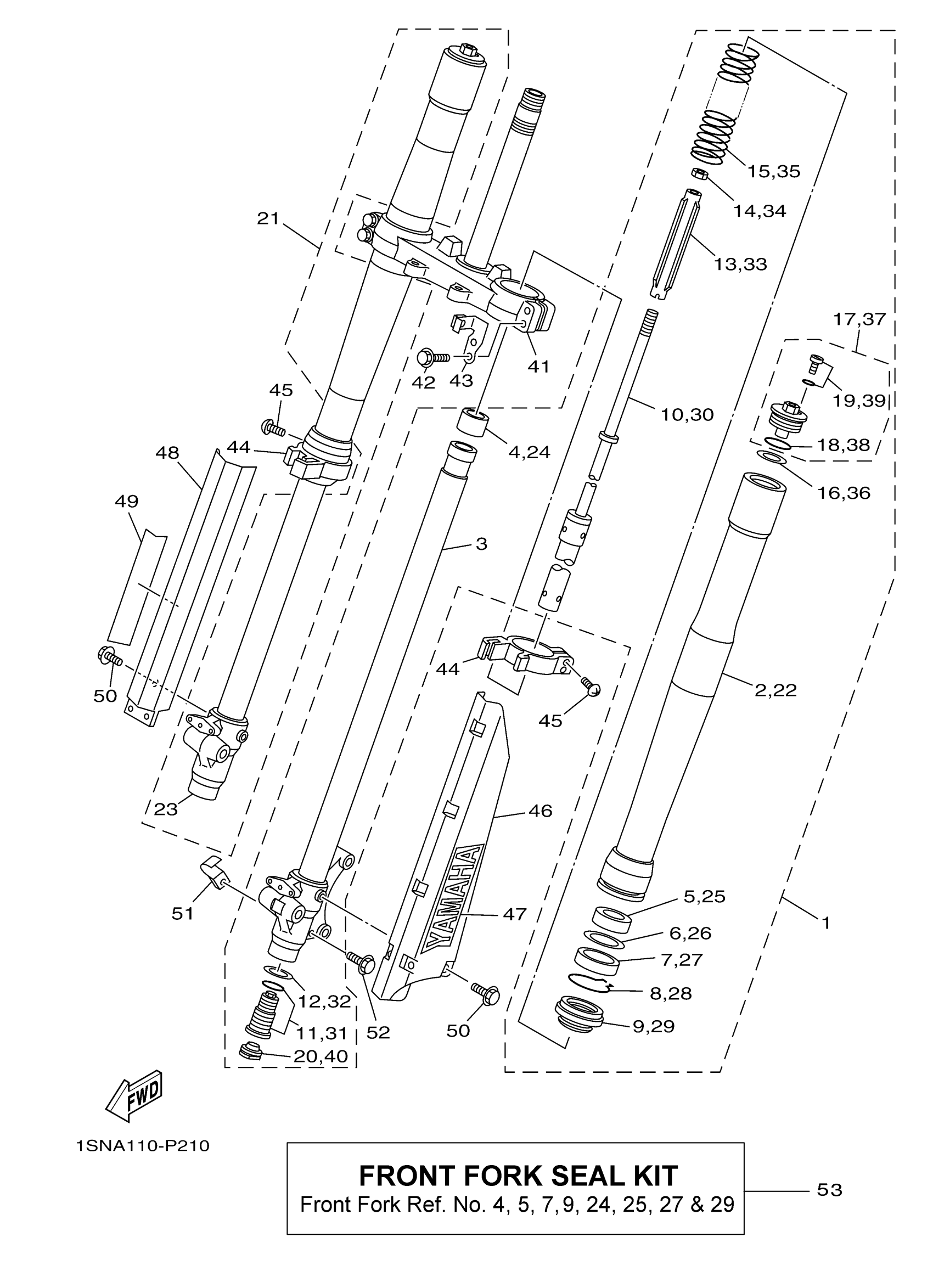 Yamaha YZ85F (YZ85) 1SNA 2015 FRONT FORK Diagram