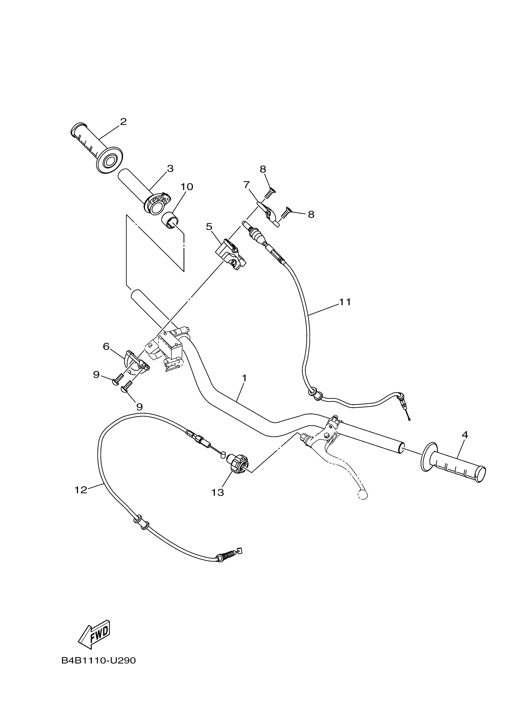 Yamaha YZ85LWS (YZ85 LW) B0GP 2025 STEERING HANDLE & CABLE Diagram