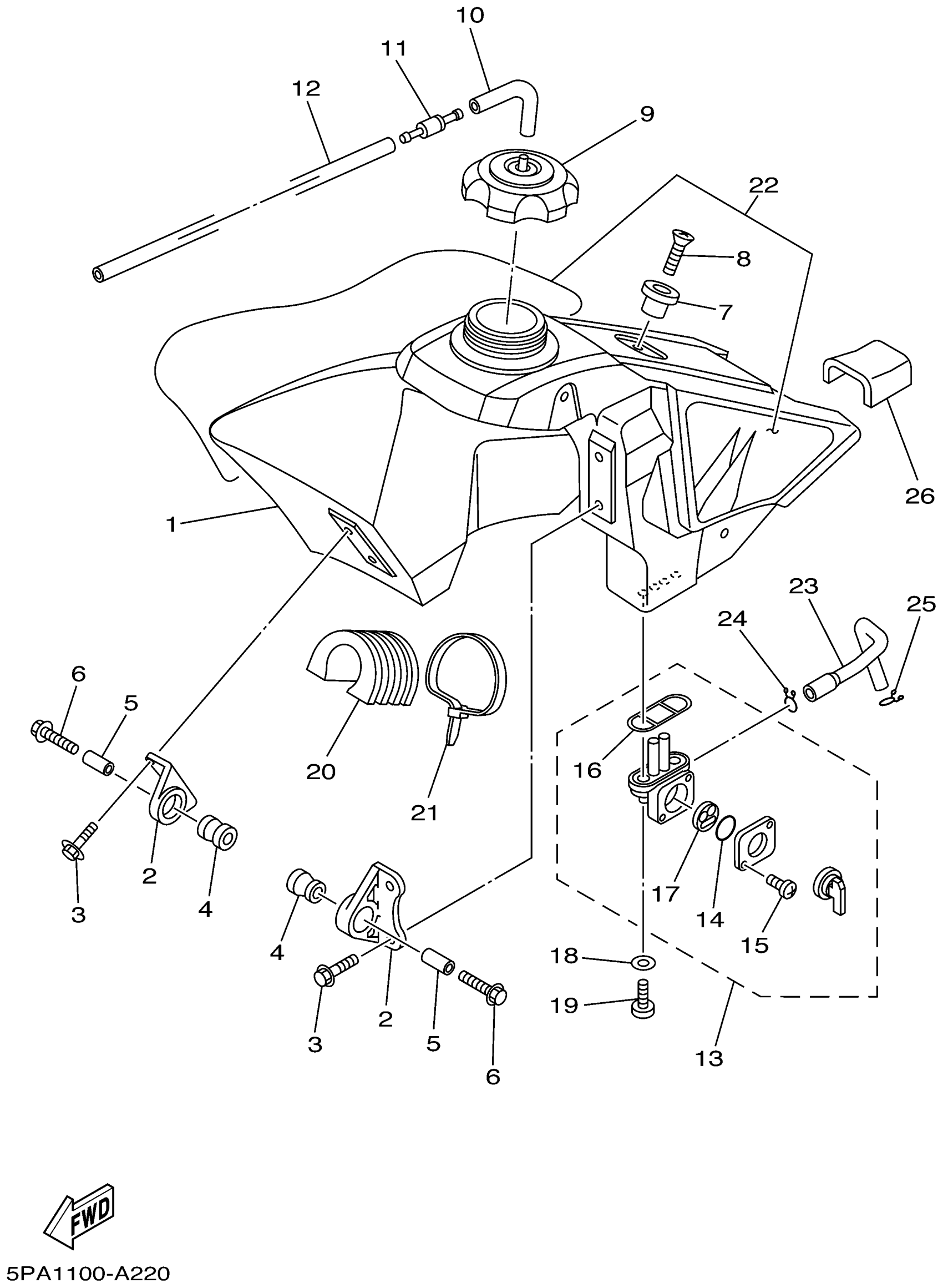 Yamaha YZ85P (YZ85) 5PA1 2002 FUEL TANK Diagram