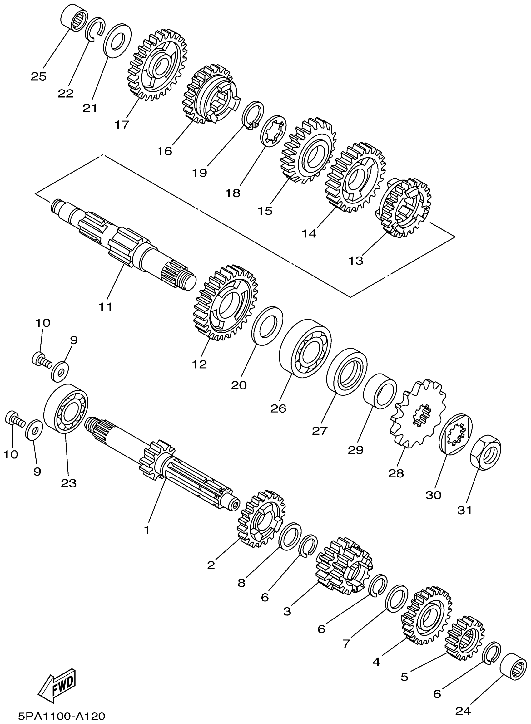 Yamaha YZ85P (YZ85) 5PA1 2002 TRANSMISSION Diagram