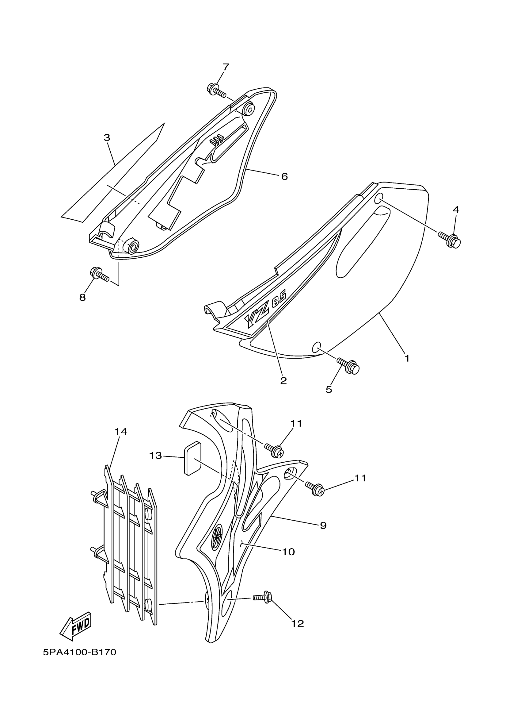 Yamaha YZ85R (YZ85) 5PA4 2003 SIDE COVER Diagram
