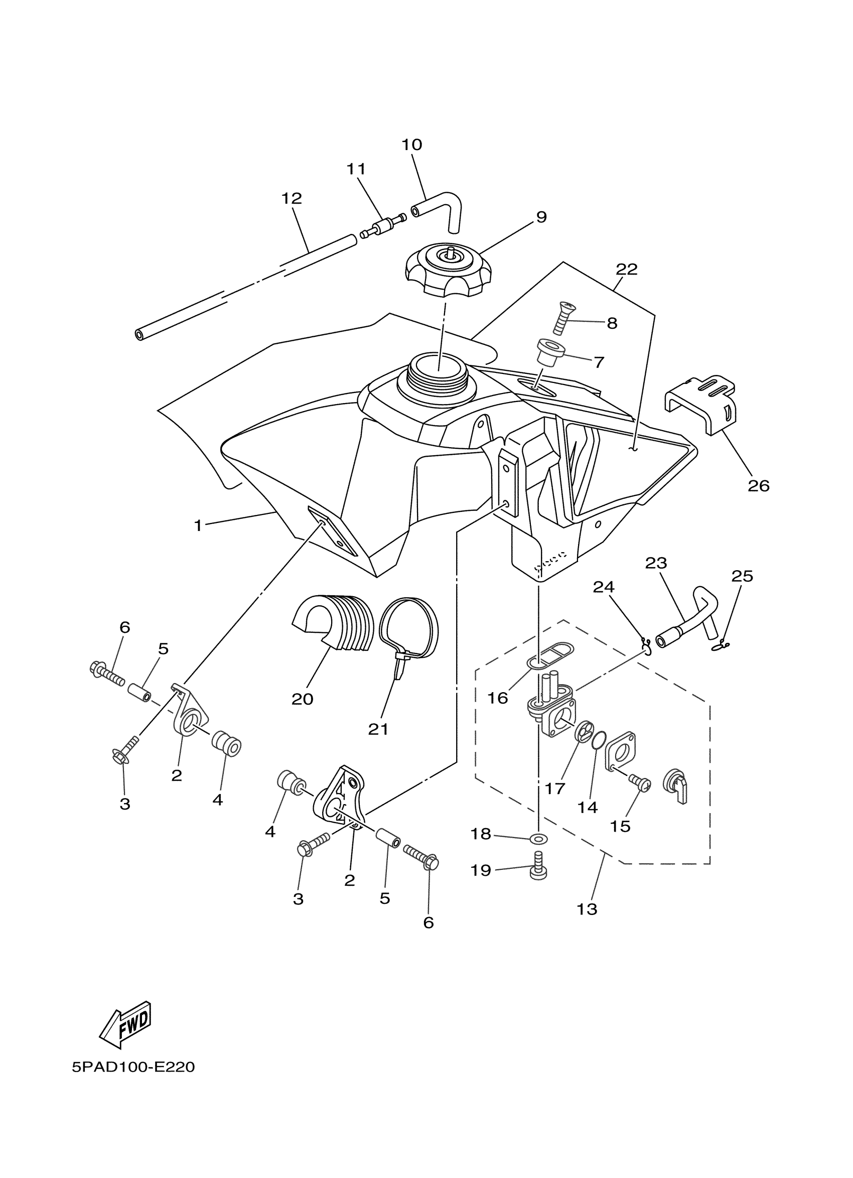 Yamaha YZ85V (YZ85) 5PAD 2006 FUEL TANK Diagram