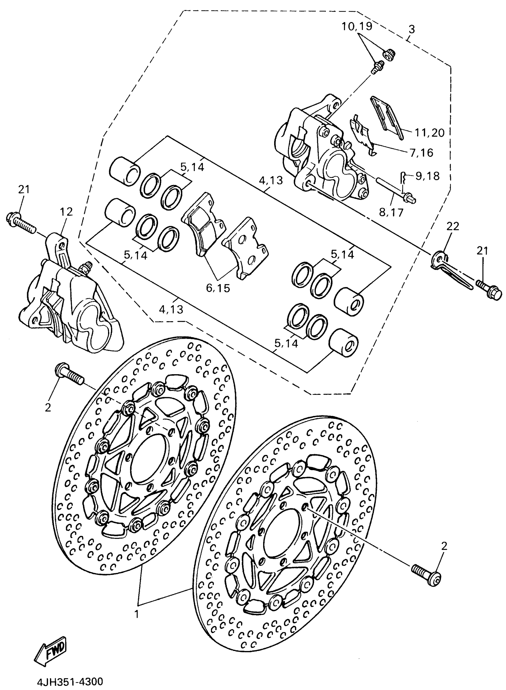 Yamaha YZF600RG (YZF600R) 1995 FRONT BRAKE CALIPER Diagram