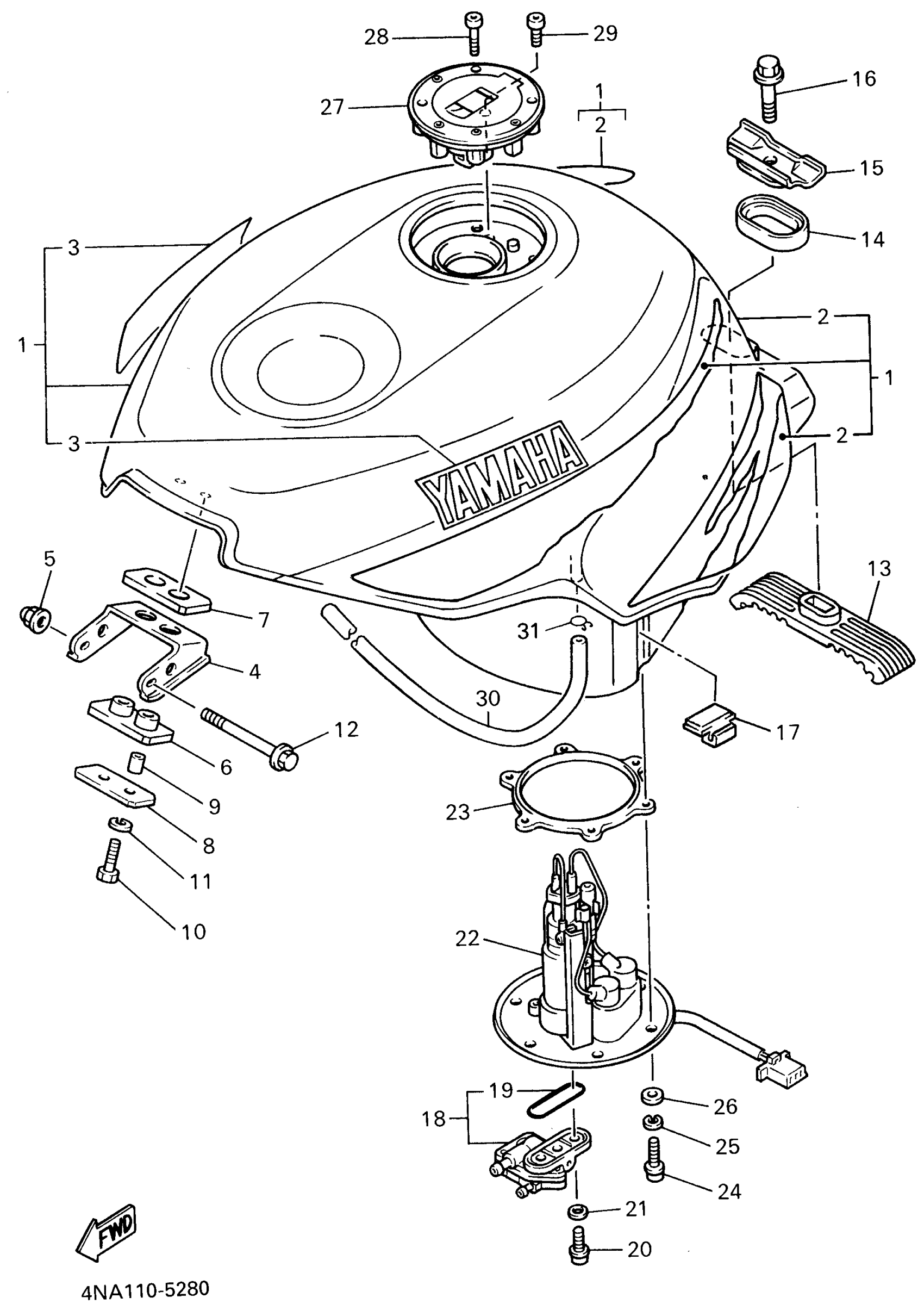 Yamaha YZF600RG (YZF600R) 1995 FUEL TANK Diagram