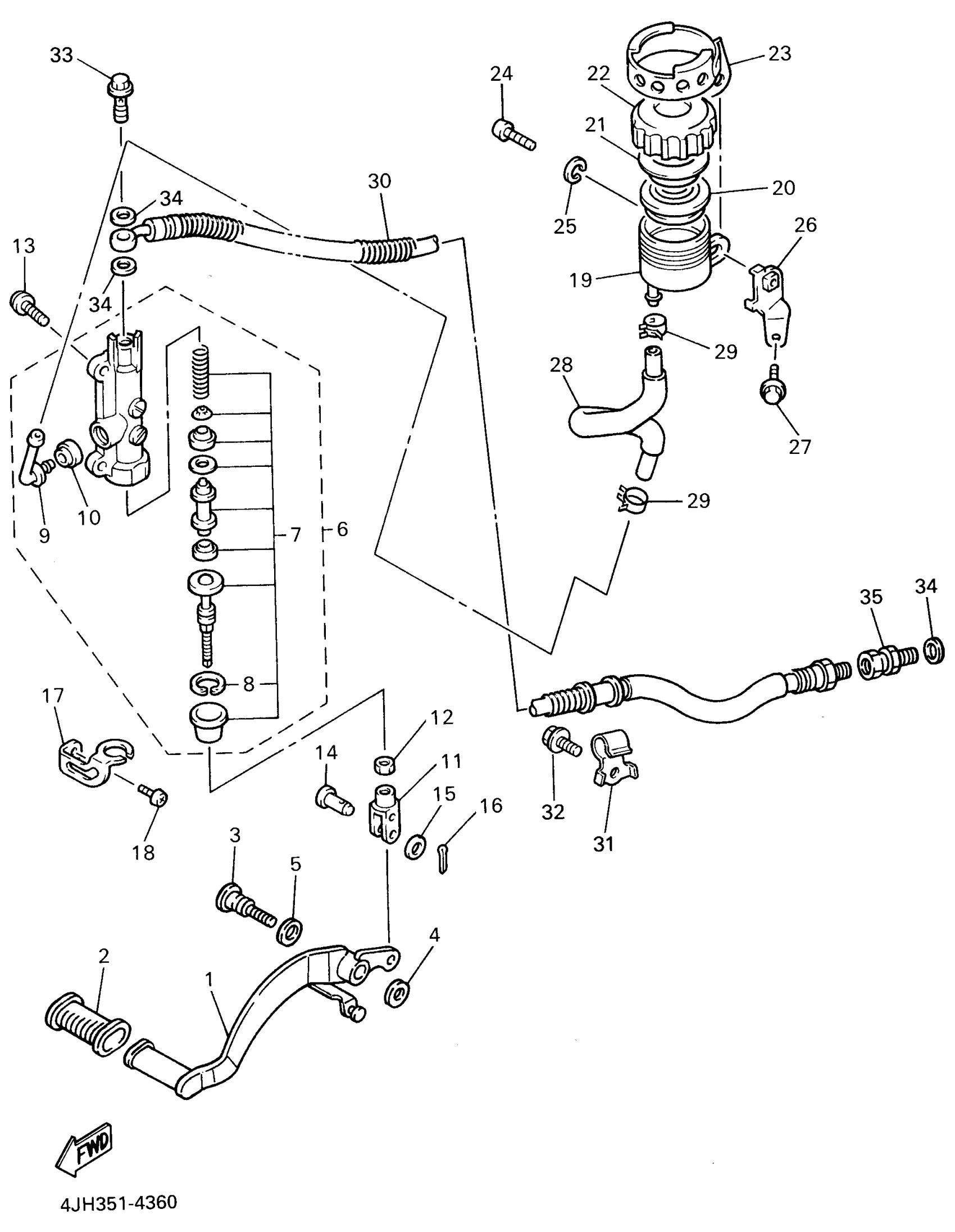 Yamaha YZF600RG (YZF600R) 1995 REAR MASTER CYLINDER Diagram