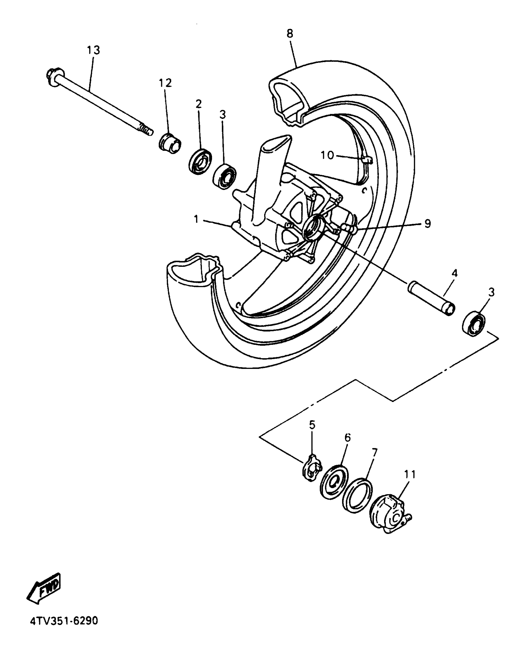 Yamaha YZF600RJC (YZF600R CA) 5AH2 1997 FRONT WHEEL Diagram