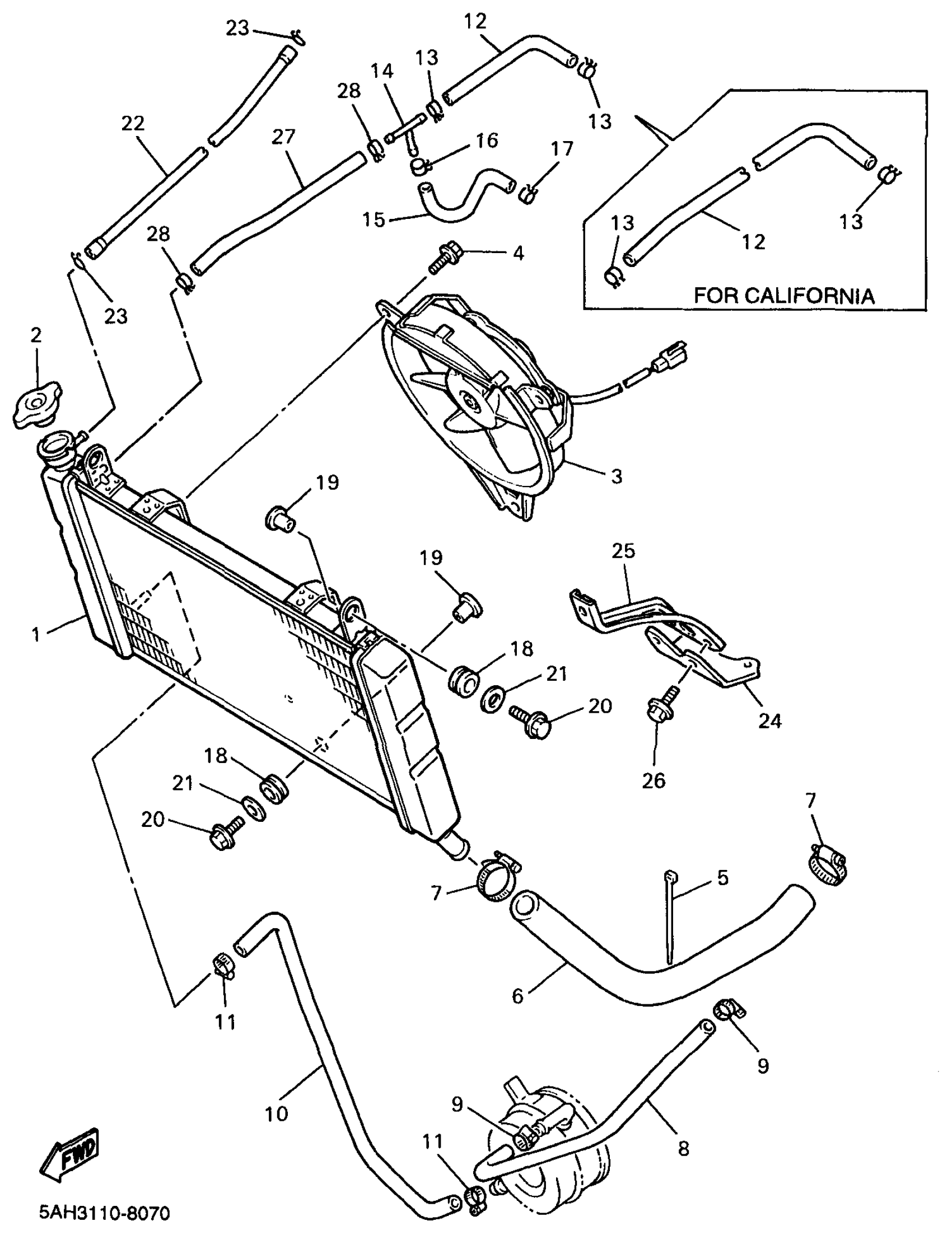 Yamaha YZF600RKC (YZF600R CA) 1998 RADIATOR HOSE Diagram
