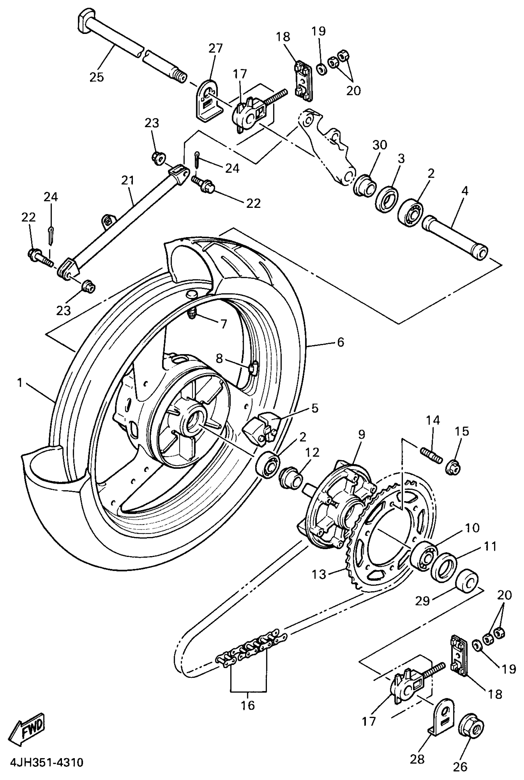 Yamaha YZF600RKC (YZF600R CA) 1998 REAR WHEEL Diagram