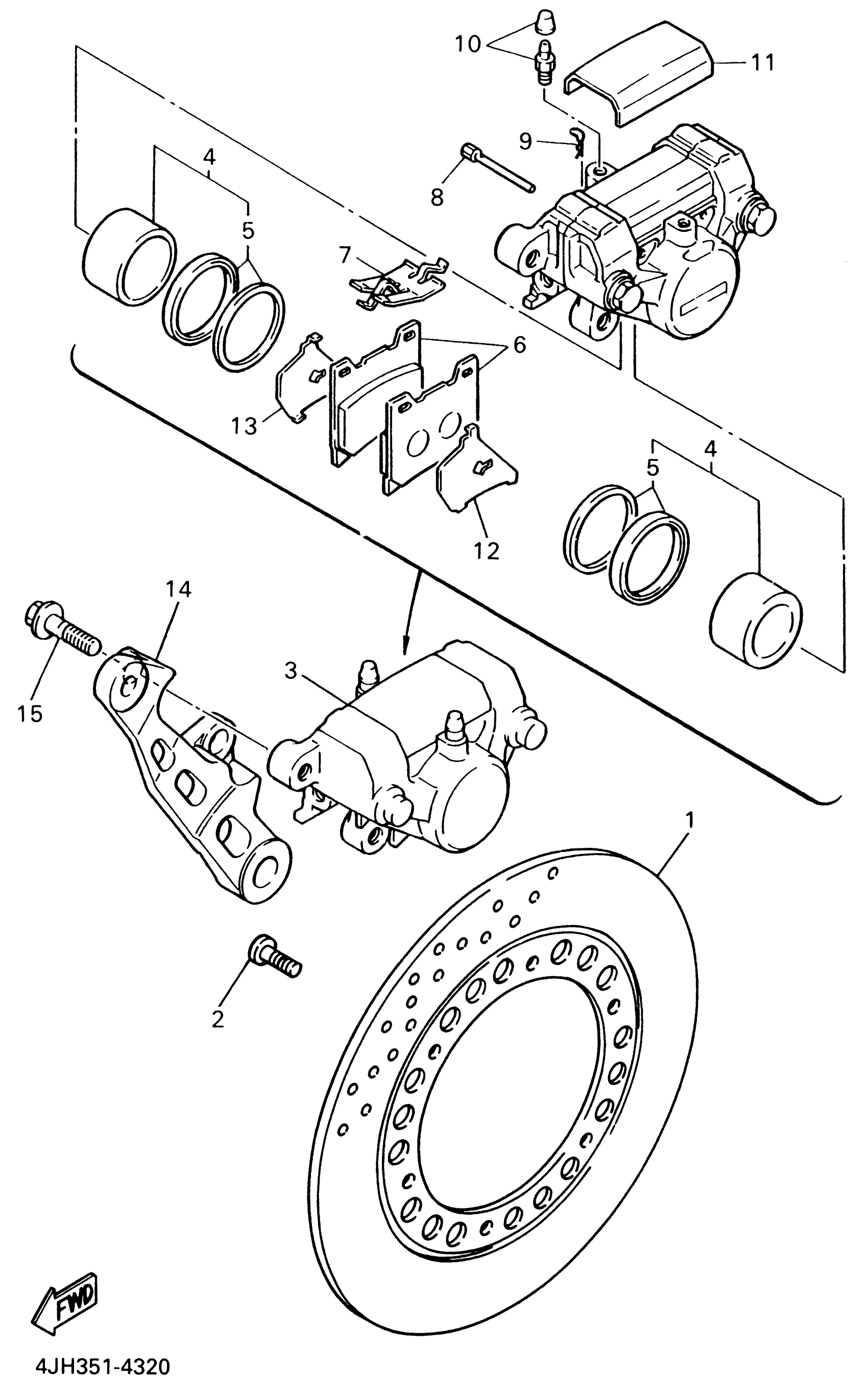 Yamaha YZF600RNC (YZF600R CA) 5AHA 2001 REAR BRAKE CALIPER Diagram