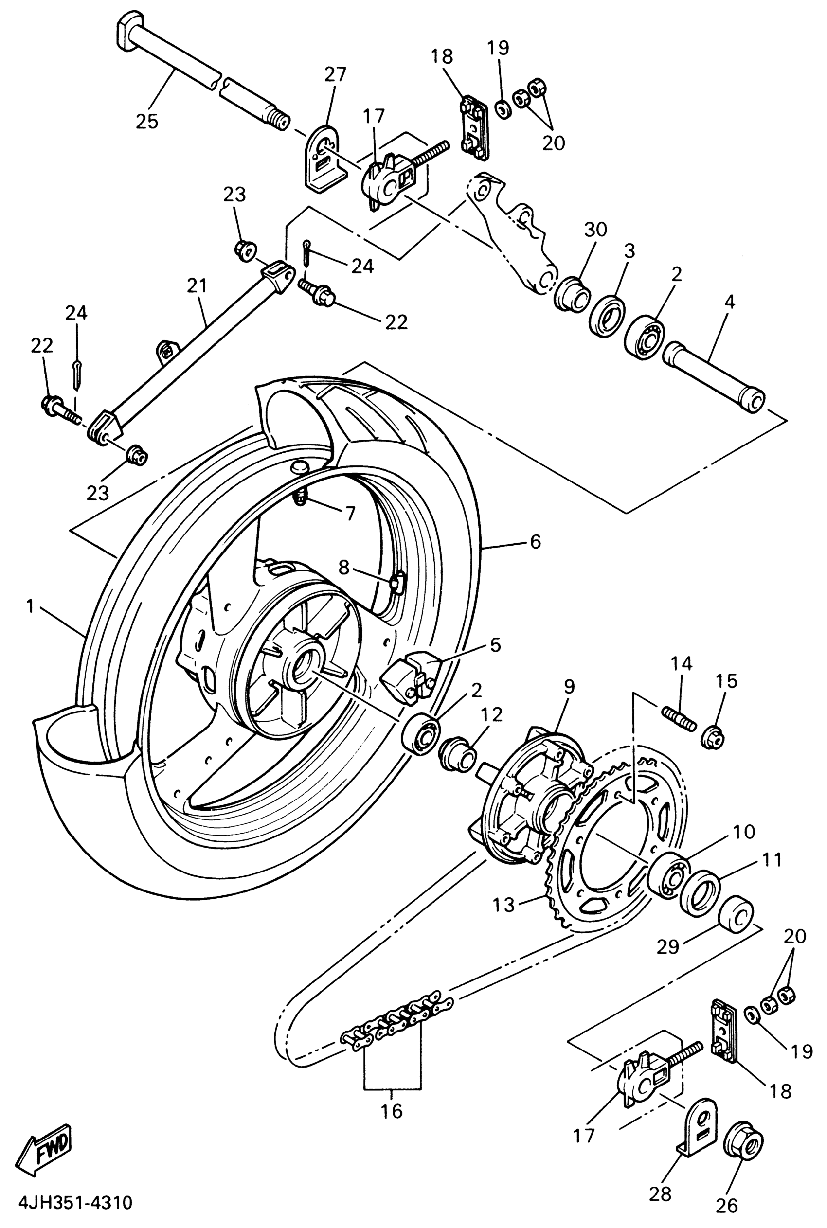 Yamaha YZF600RNC (YZF600R CA) 5AHA 2001 REAR WHEEL Diagram