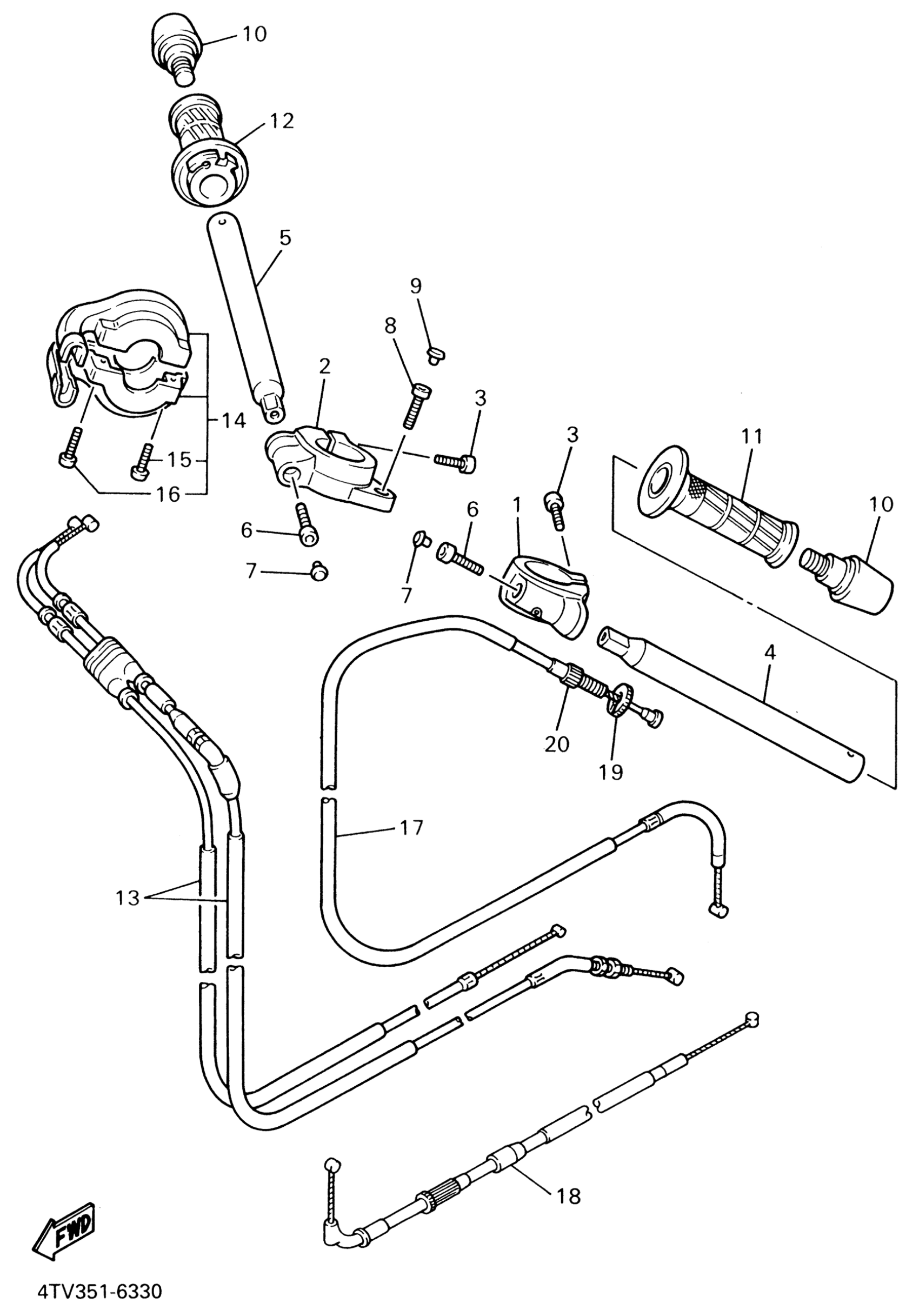 Yamaha YZF600RNC (YZF600R CA) 5AHA 2001 STEERING HANDLE CABLE Diagram