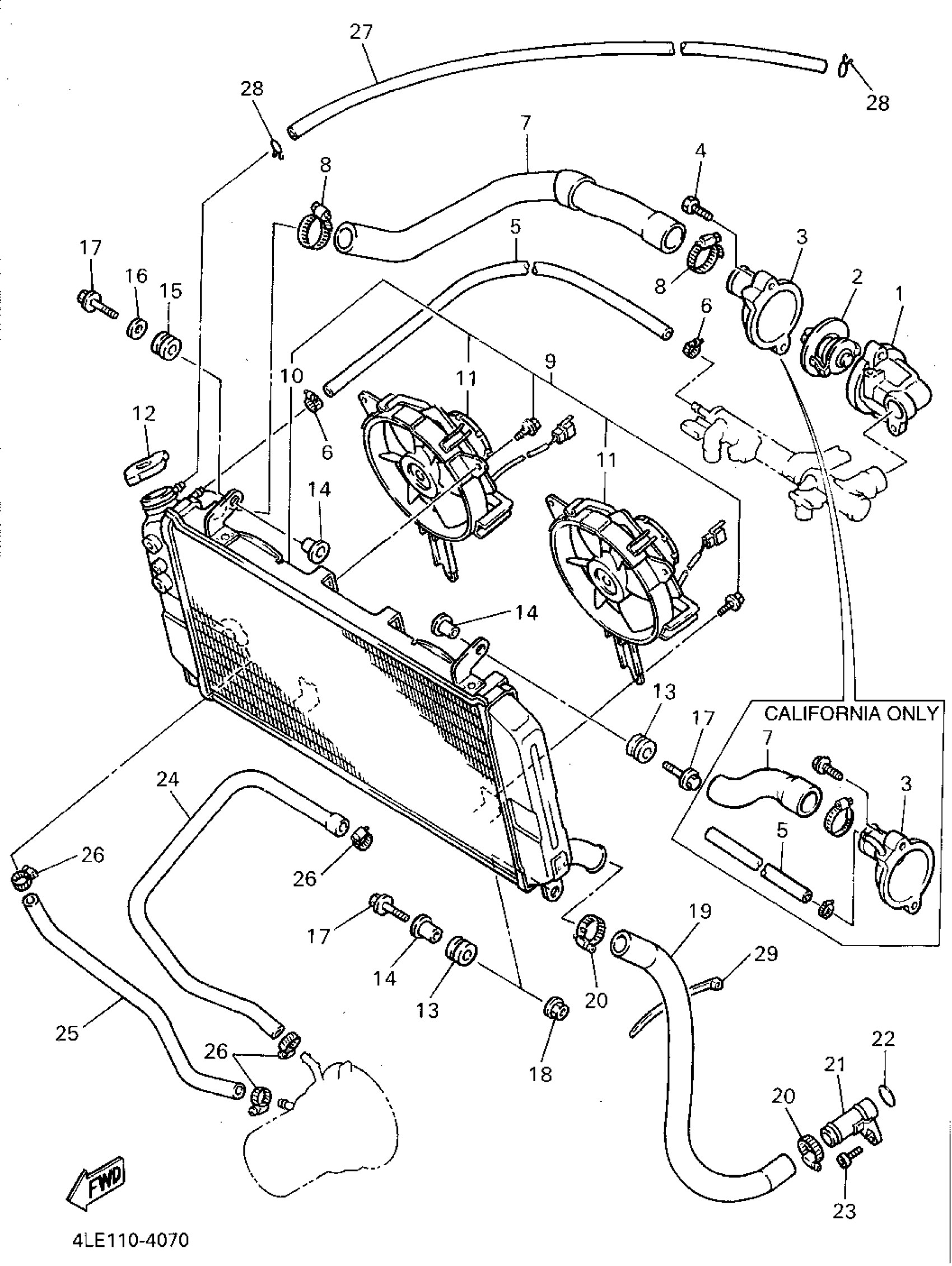 Yamaha YZF750RFC (YZF750R CA) 1994 RADIATOR HOSE Diagram