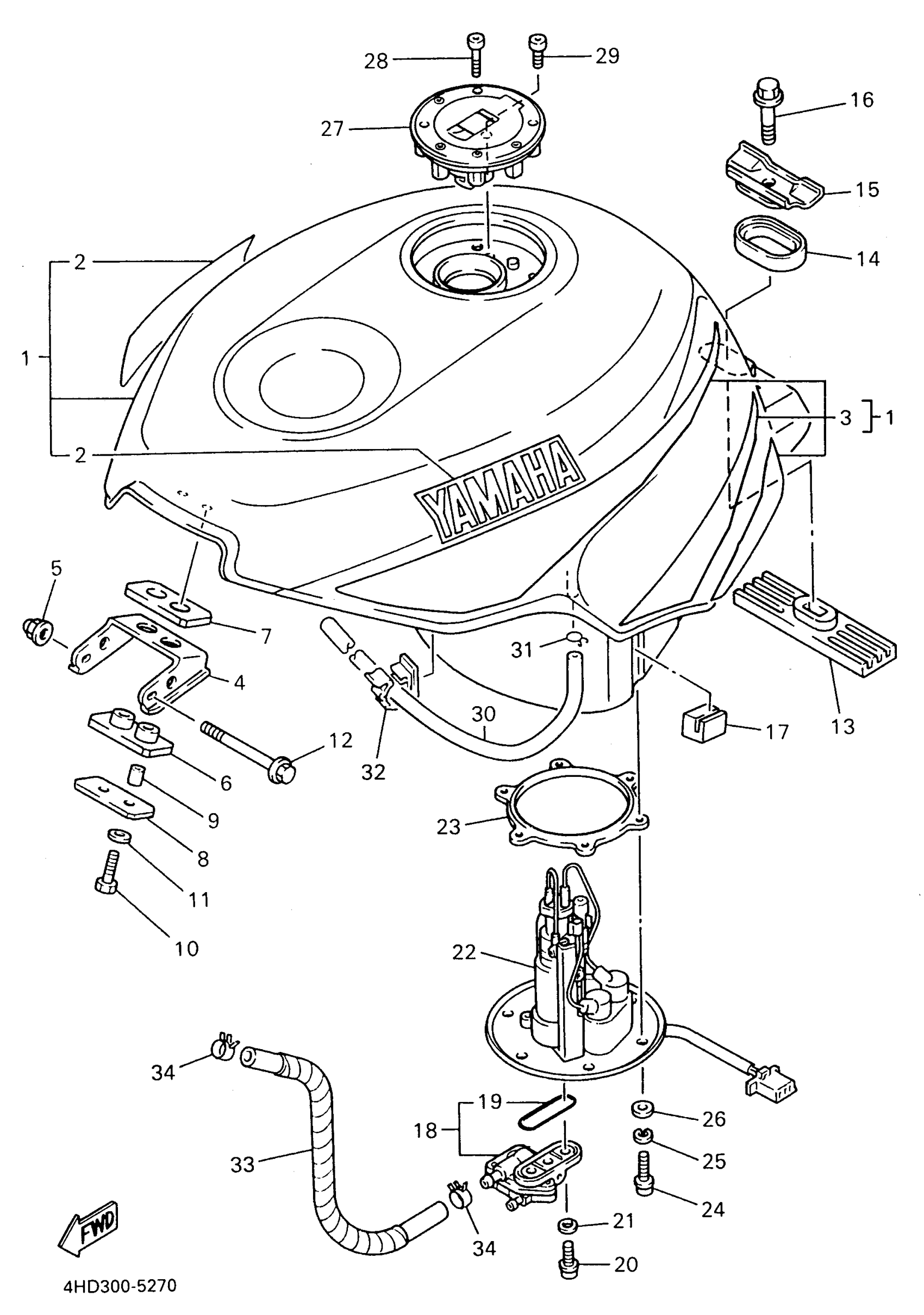 Yamaha YZF750RHC (YZF750R CA) 1996 FUEL TANK NON CALIFORNIA Diagram