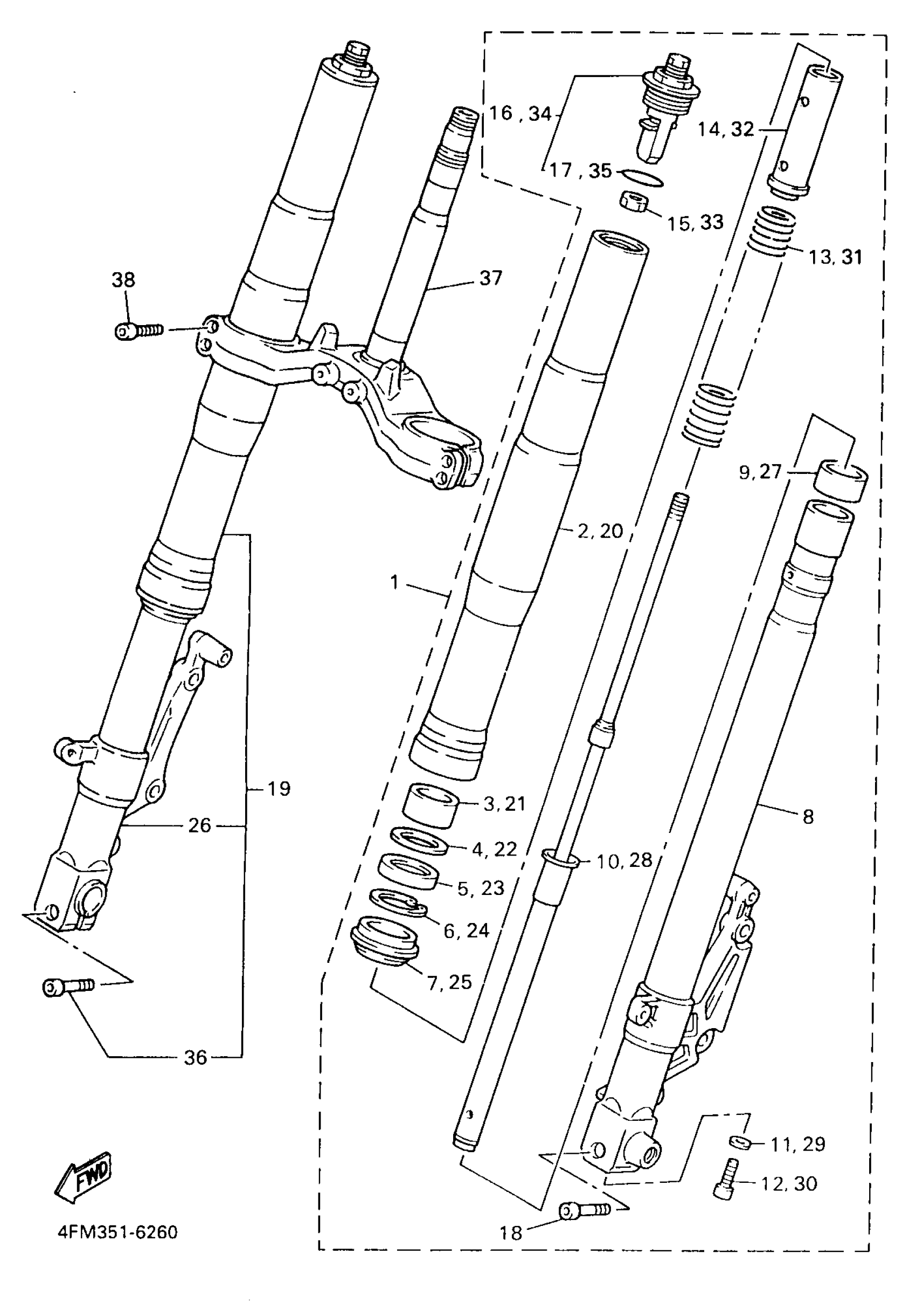 Yamaha YZF750RJC (YZF750R CA) 4LES1 1997 FRONT FORK Diagram