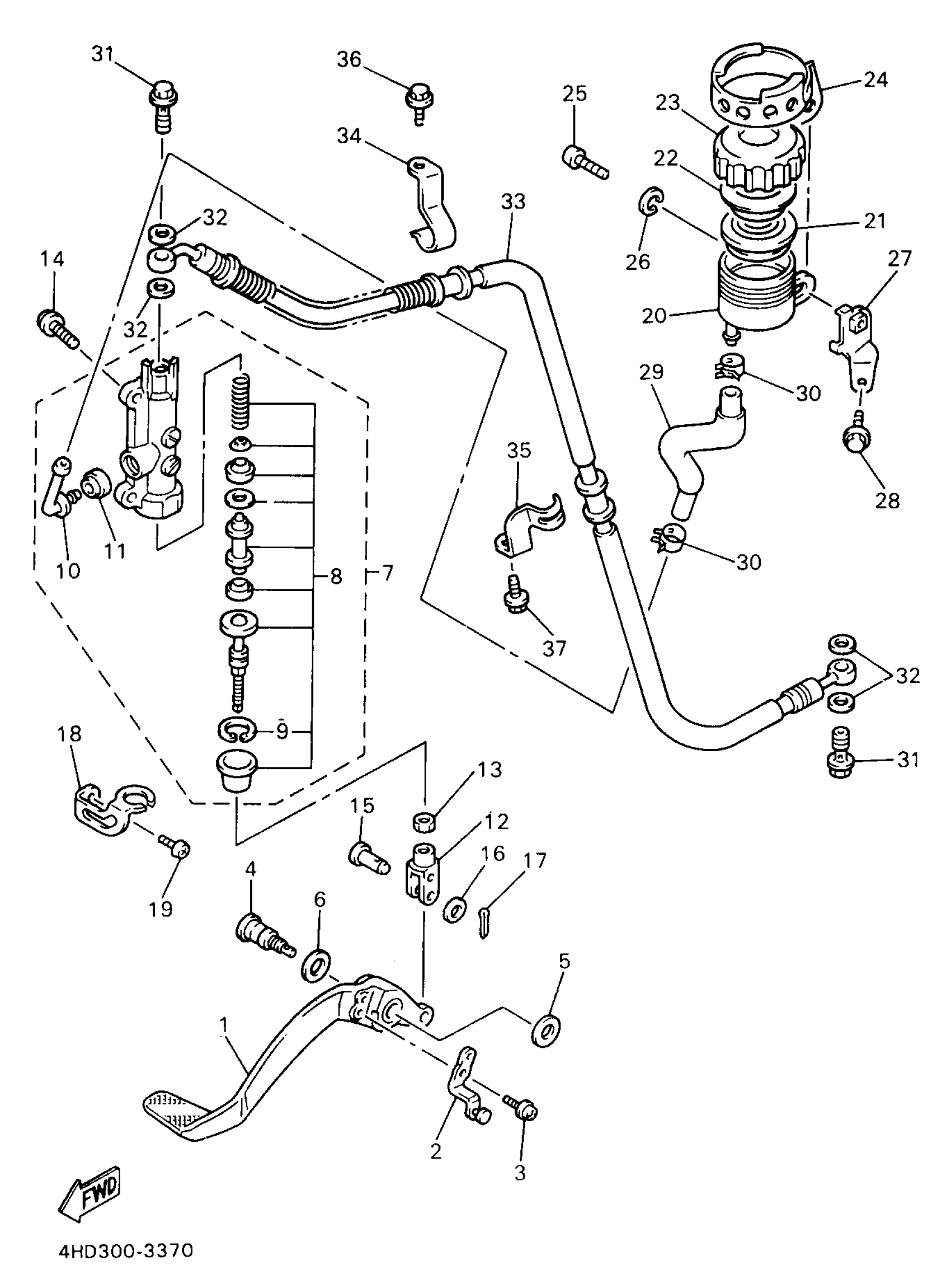 Yamaha YZF750RJC (YZF750R CA) 4LES1 1997 REAR MASTER CYLINDER Diagram