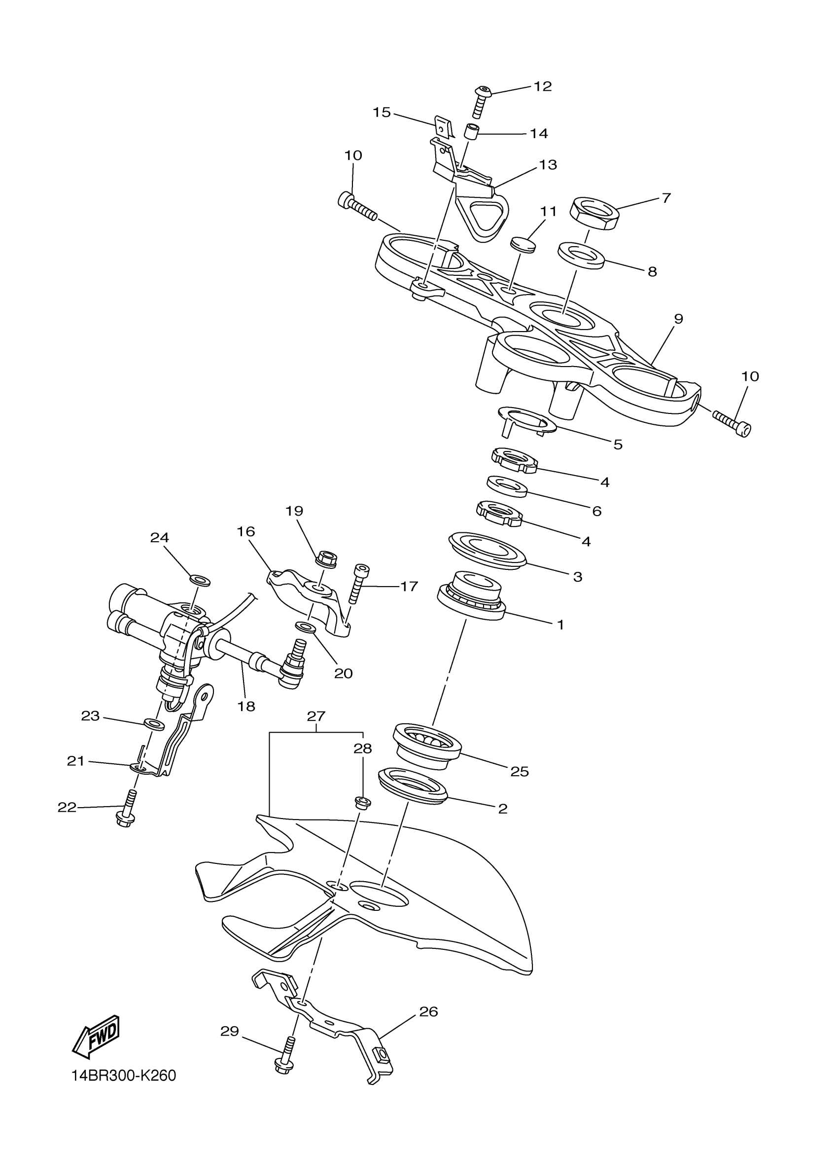 Yamaha YZFR1AL (YZFR1) 1KB10 2011 STEERING Diagram