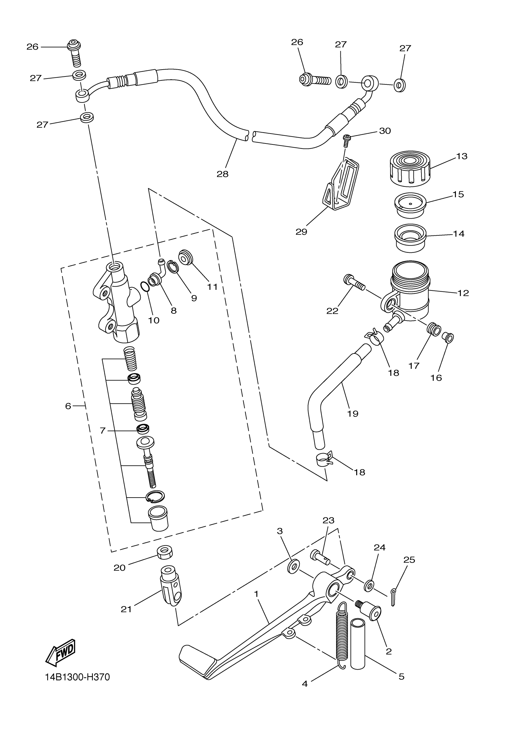 Yamaha YZFR1AR (YZFR1) 1KB5 2011 REAR MASTER CYLINDER Diagram