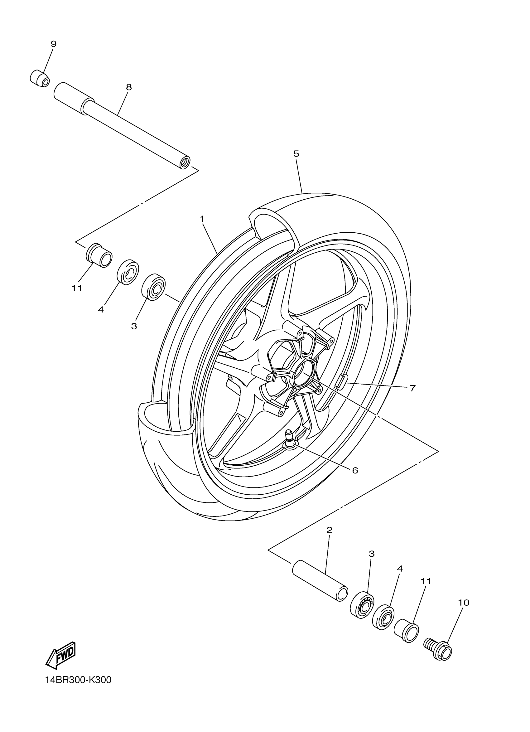 Yamaha YZFR1BGP (YZFR1 WORLD GP 50TH ANNIVERSARY ED) 1KBL 2012 FRONT WHEEL Diagram