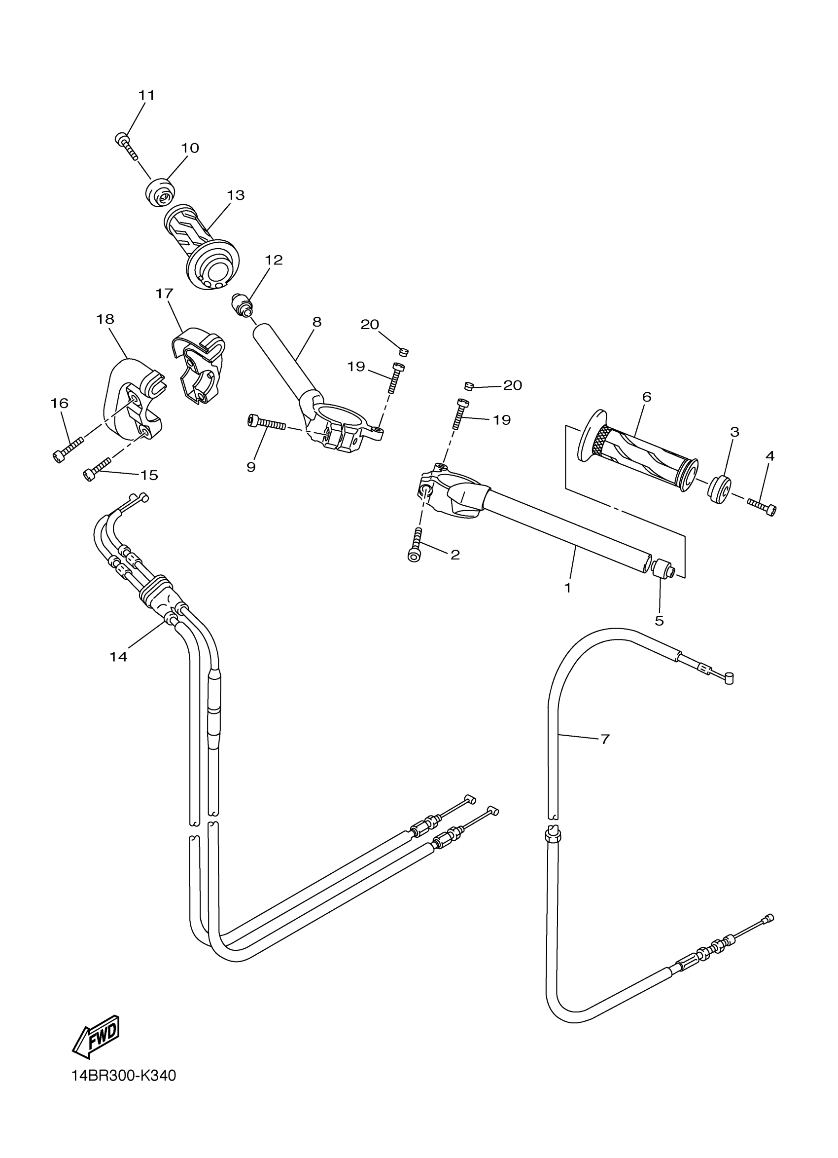 Yamaha YZFR1BGP (YZFR1 WORLD GP 50TH ANNIVERSARY ED) 1KBL 2012 STEERING HANDLE CABLE Diagram