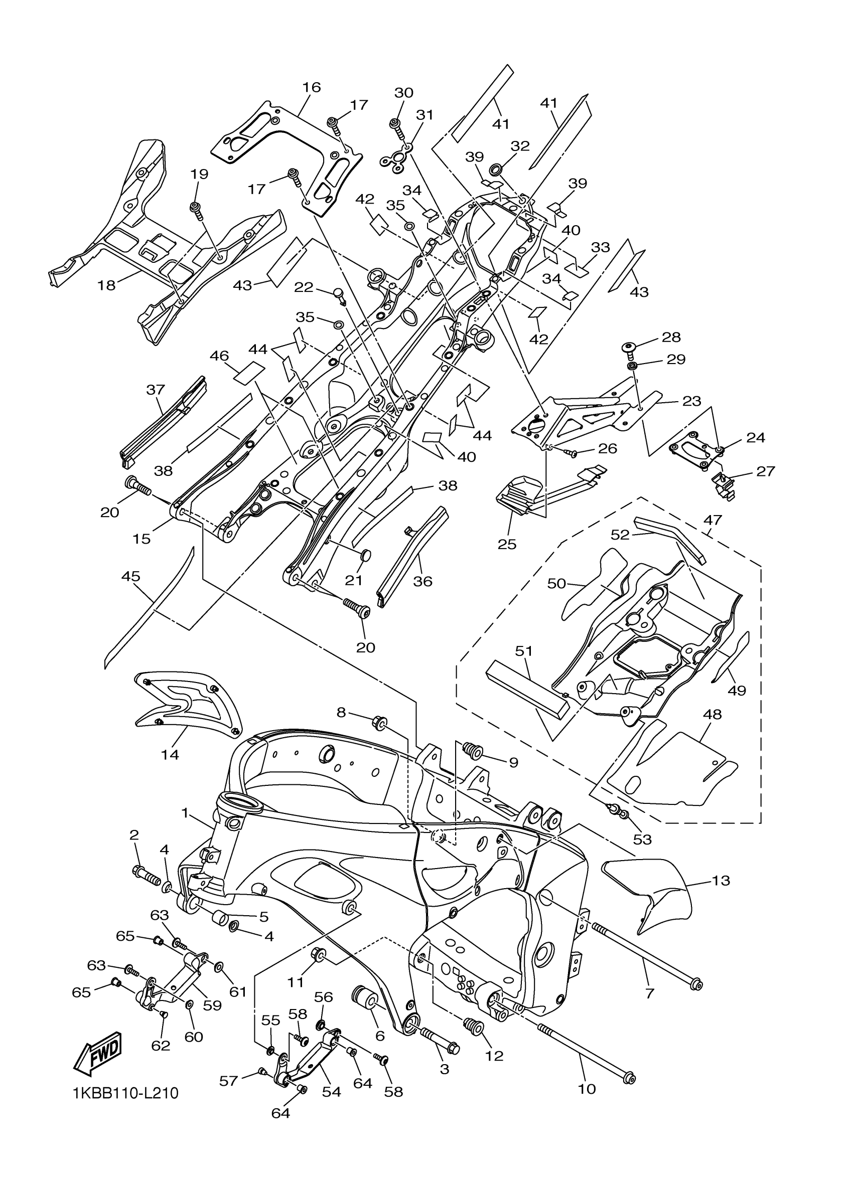 Yamaha YZFR1BW (YZFR1) 1KBE 2012 FRAME Diagram