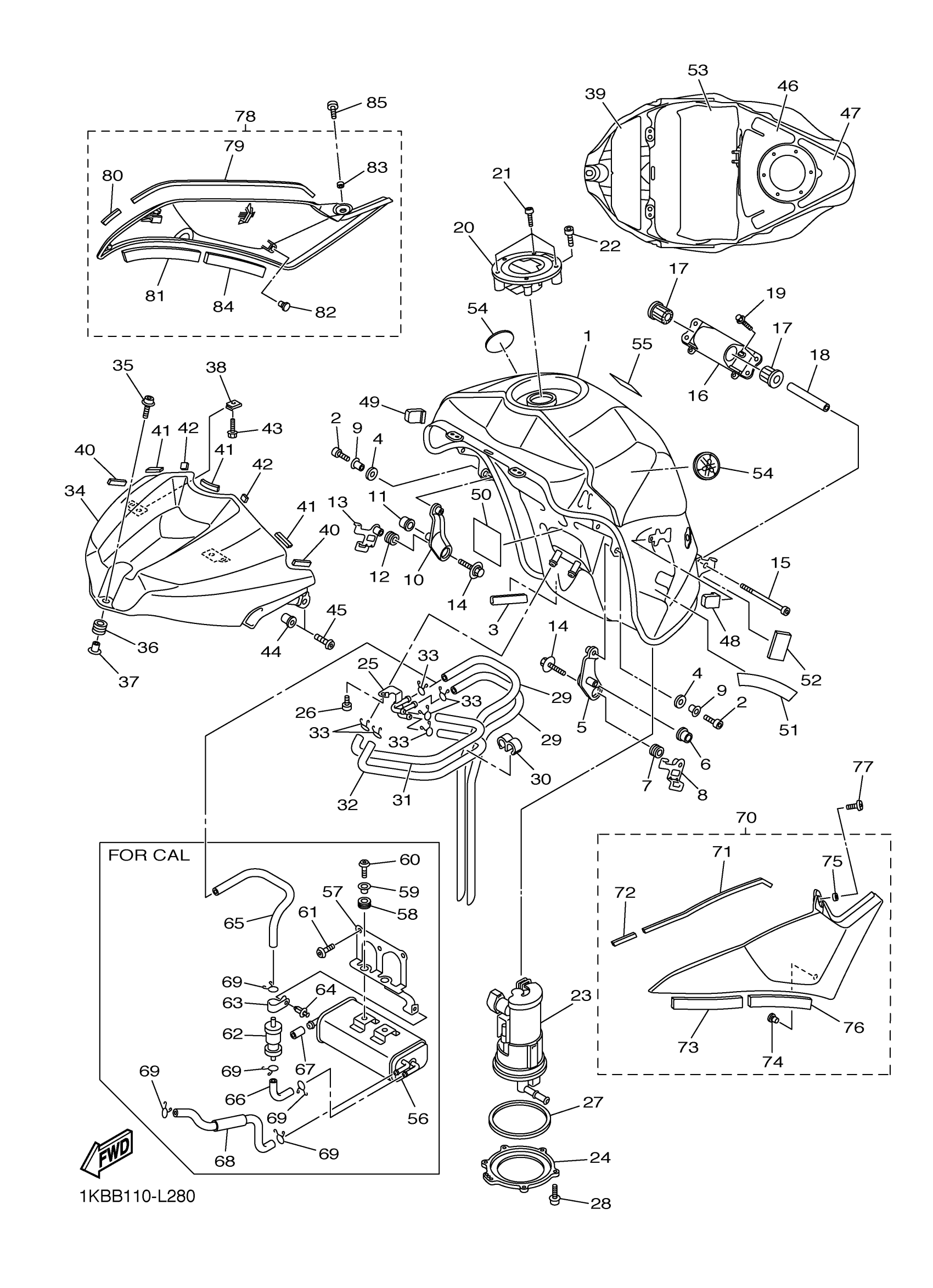 Yamaha YZFR1BW (YZFR1) 1KBE 2012 FUEL TANK Diagram