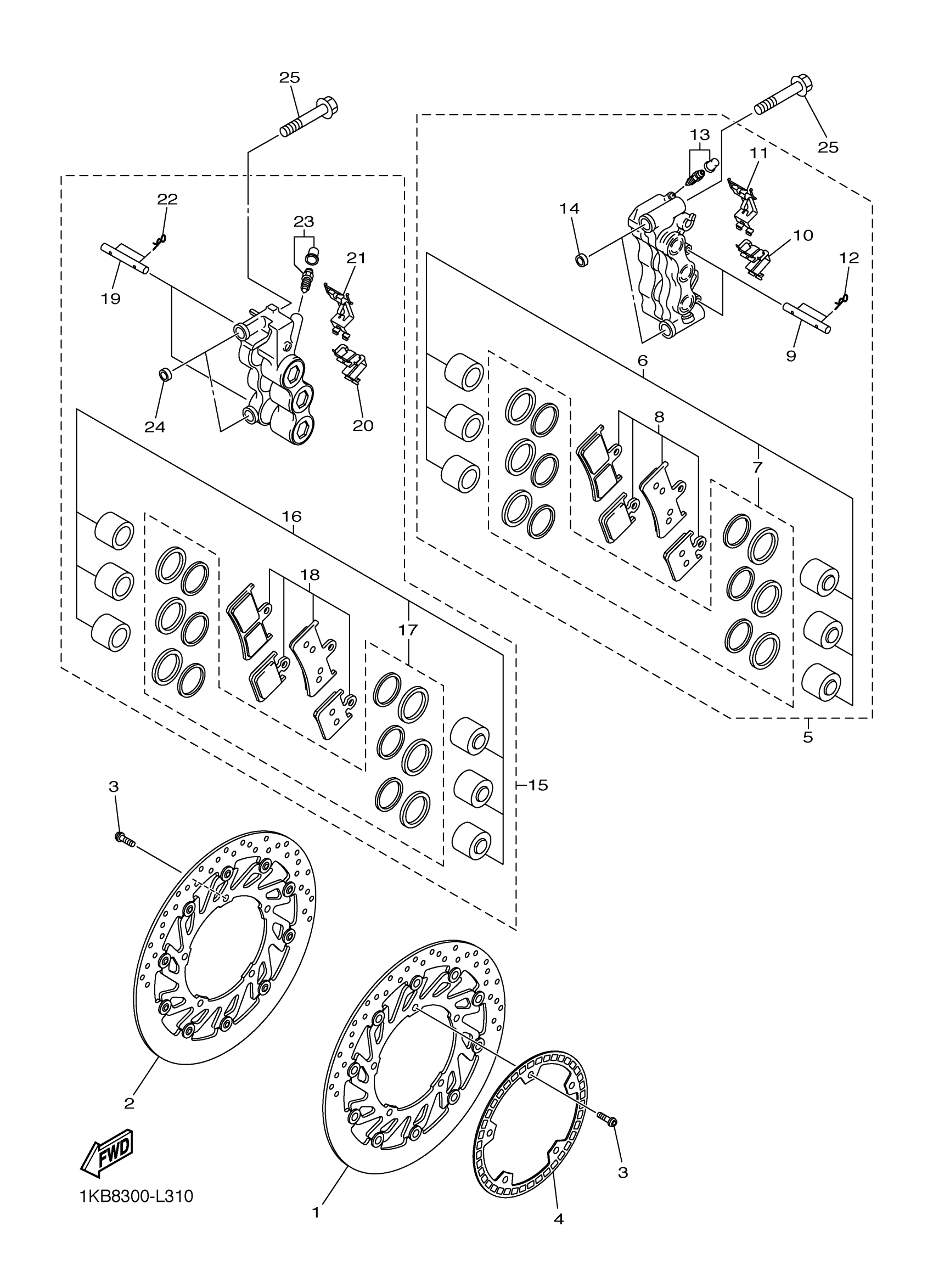 Yamaha YZFR1DR (YZFR1) 1KBW0 2013 FRONT BRAKE CALIPER Diagram